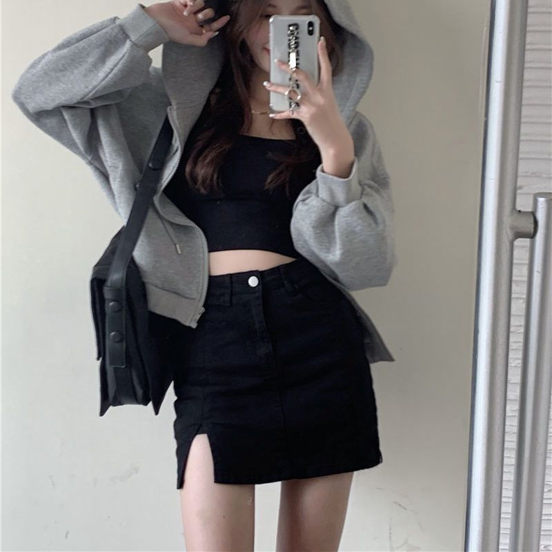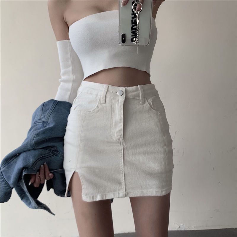 Split High Waisted Slim Denim Skirt
