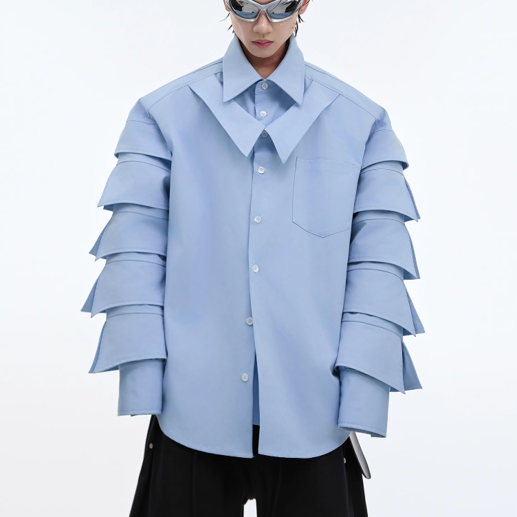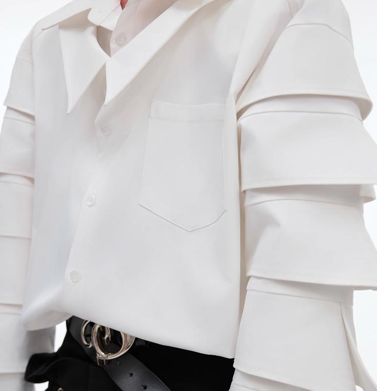 Split Padded Shoulder Fake Two Pieces Shirts Pleated Design Three-dimensional