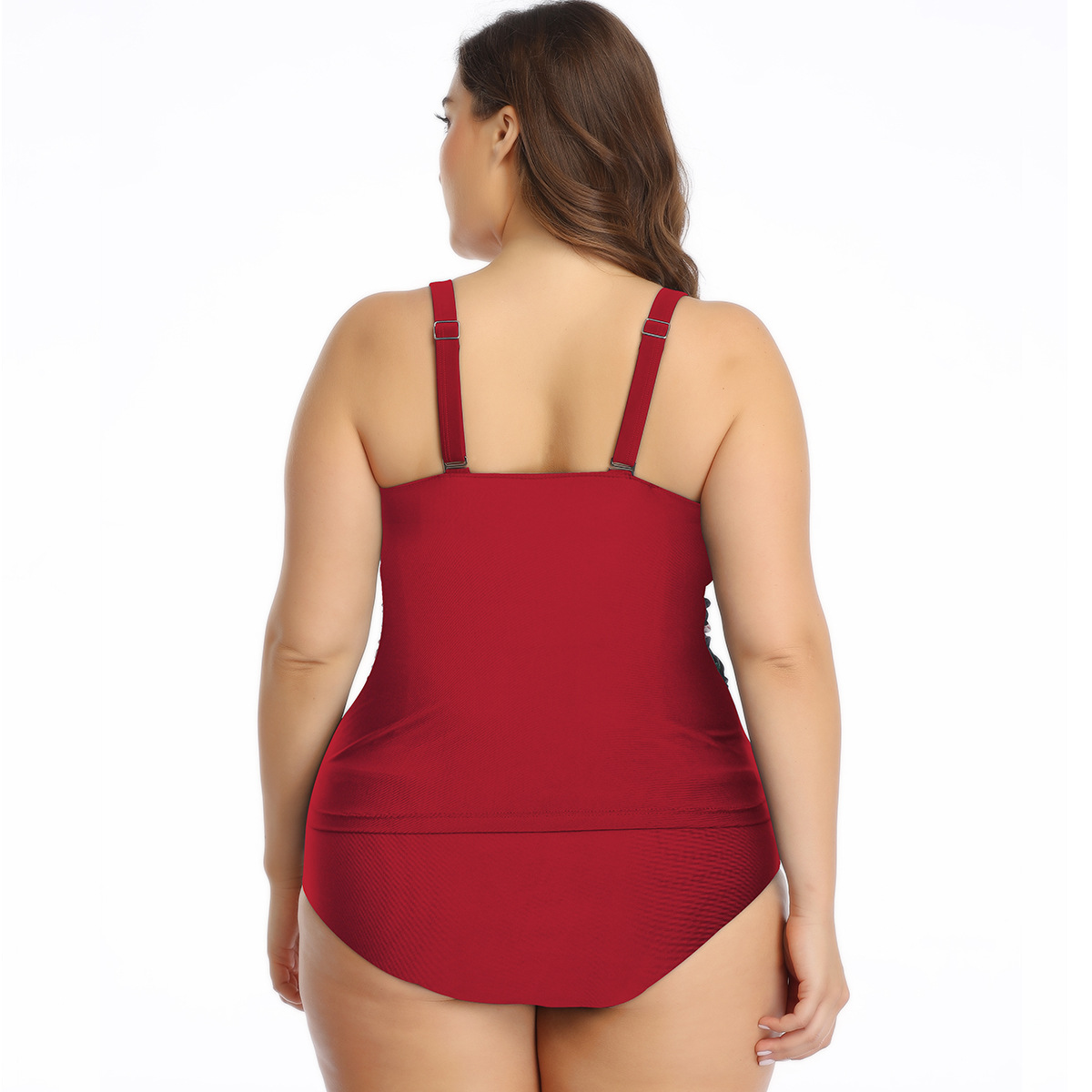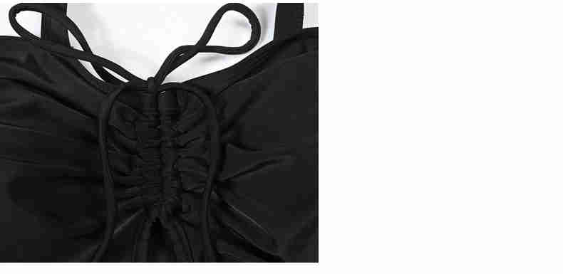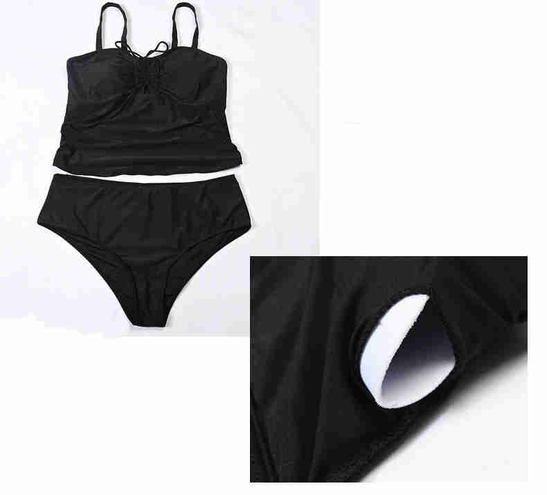 Split Plus Size Swimsuit Smocked Suspenders Solid Color Bikini