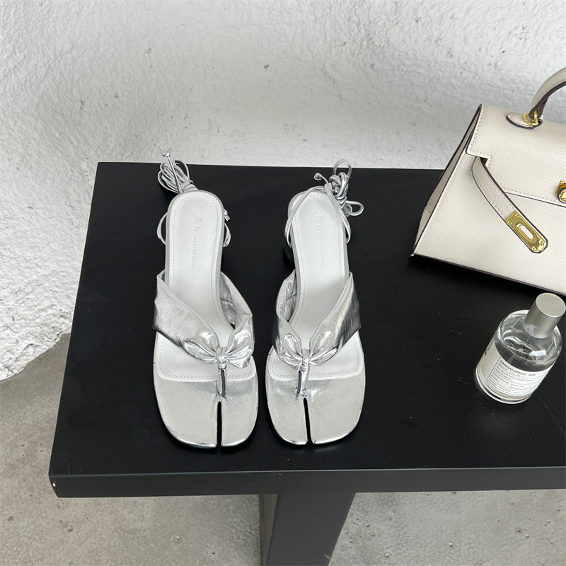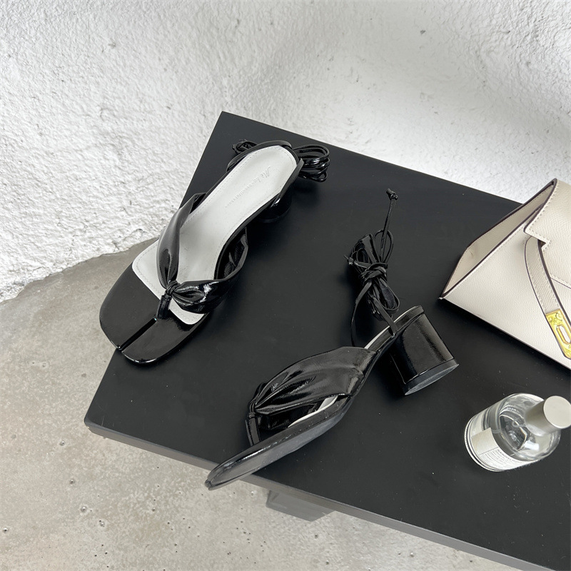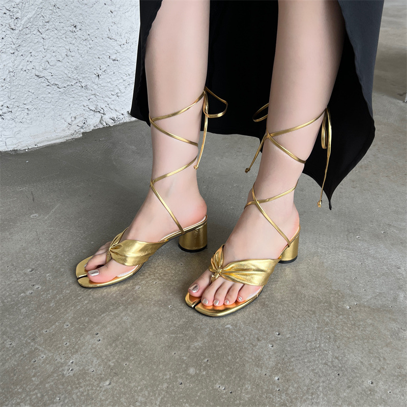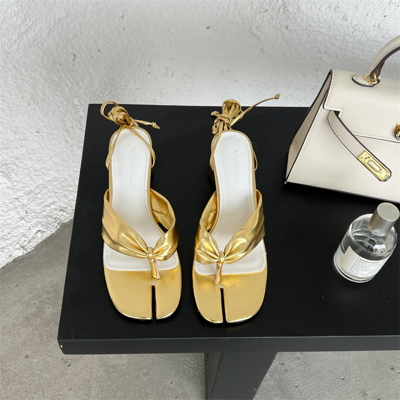 Split Toe Round Toe Chunky Heel Strap Sandals