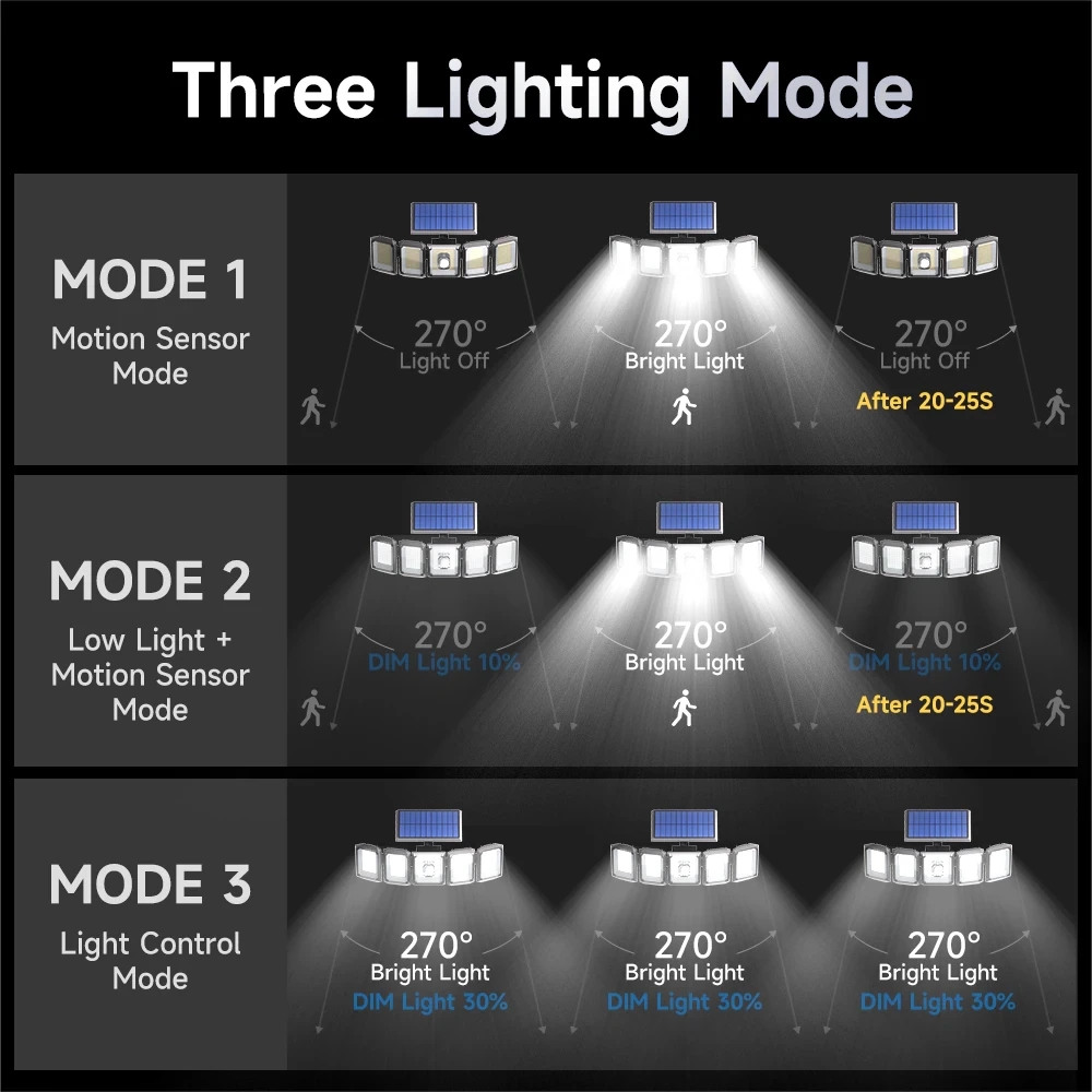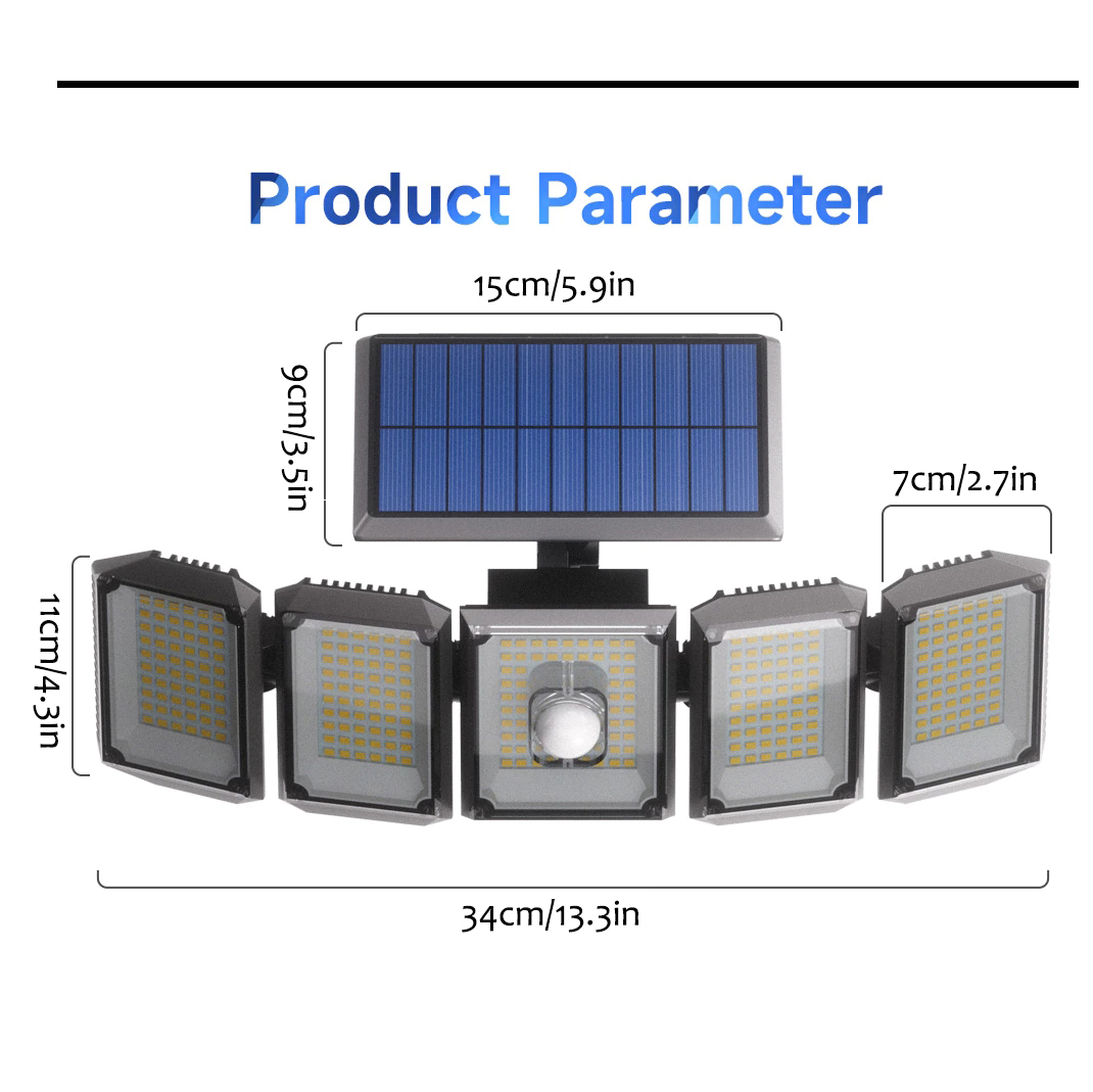 Solar Light, Waterproof Motion Sensor Safety Light With Remote Control, 5 Heads 7000K 300 L