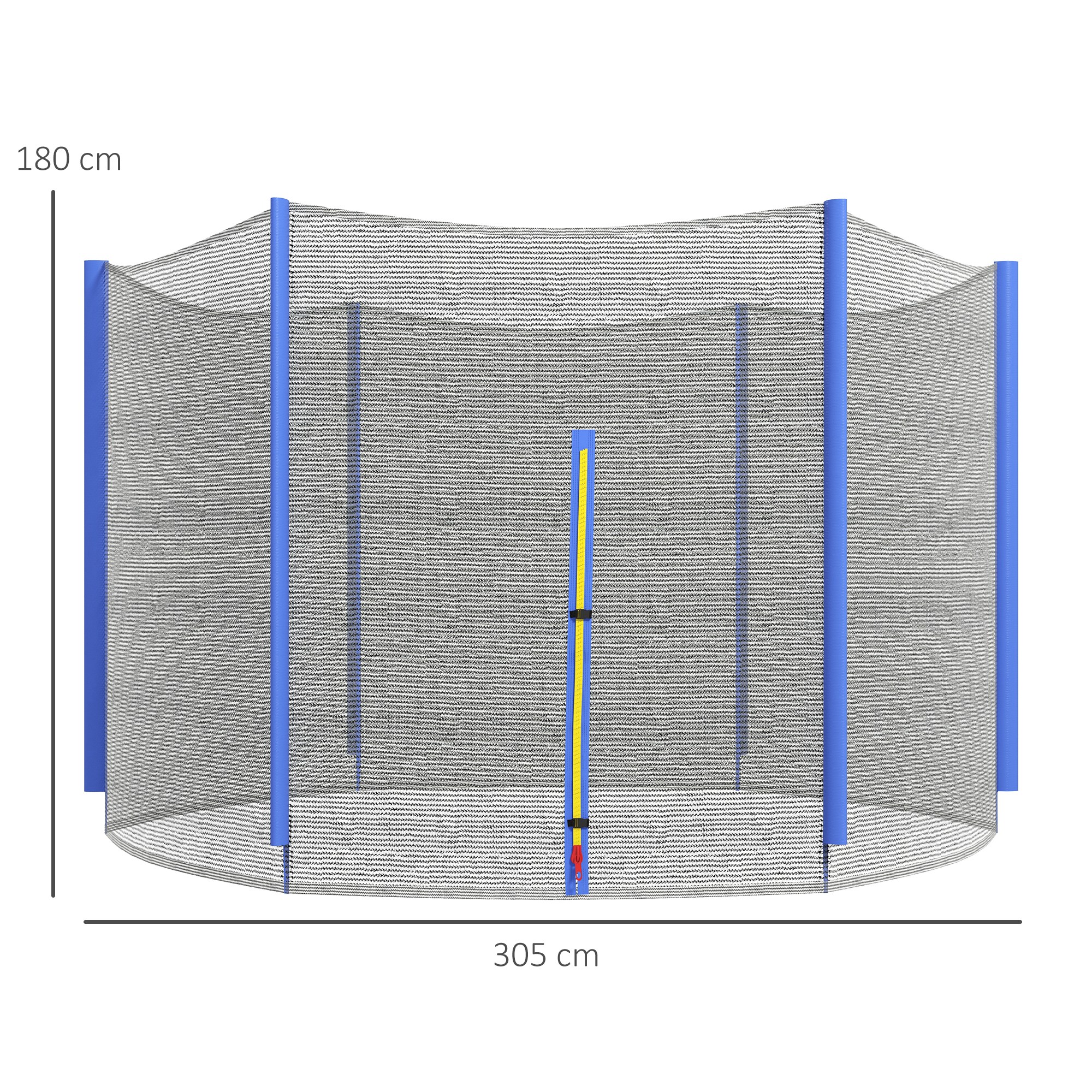 Keep your safe and protected with the SPORTNOW 305cm trampoline enclosure replacement. It fits Φ244cm/8ft trampolines with six straight poles to replace your old or ripped safety net. Our trampoline safety enclosure is made from tough, weatherproof polyethylene, allowing indoor and outdoor use. The entrance of the net includes a sealable zipped system to maximise protection. An important safety accessory, it creates a trampoline you can trust (Enclosure net ONLY, no poles included).