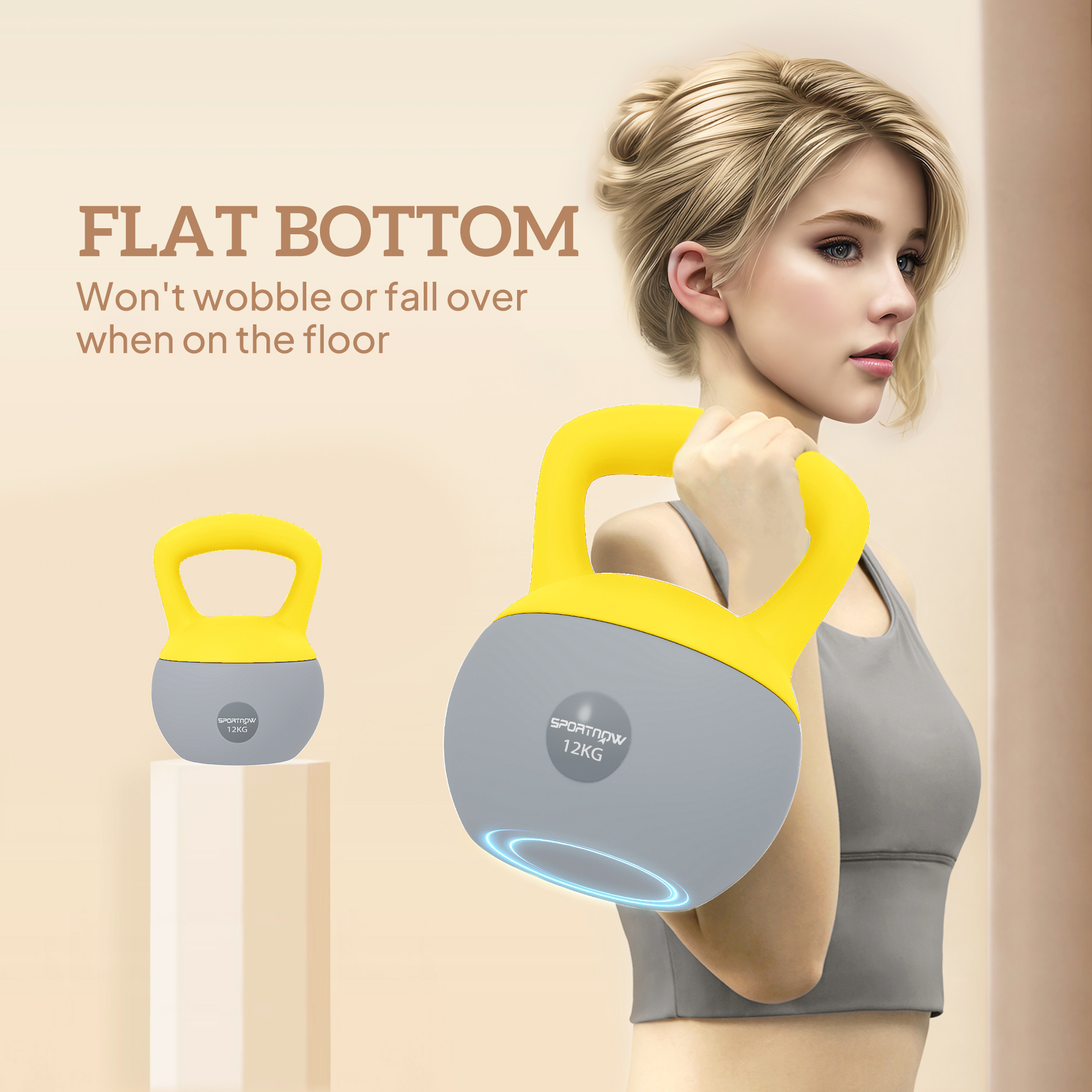 Improve home workouts with the SPORTNOW 12kg kettlebell. Deadlifts, lunges, kettlebell presses and more, you'll enjoy a full body workout. A wide, non-slip handle gives you a comfortable grip, so you can confidently exercise without worrying about dropping it. Even if you drop it, its soft body and base greatly reduce the risk of injury or damage to your floor. Filled with metal sand, it brings efficiency and effectiveness to your fitness routine, making every lift a step towards your goals.