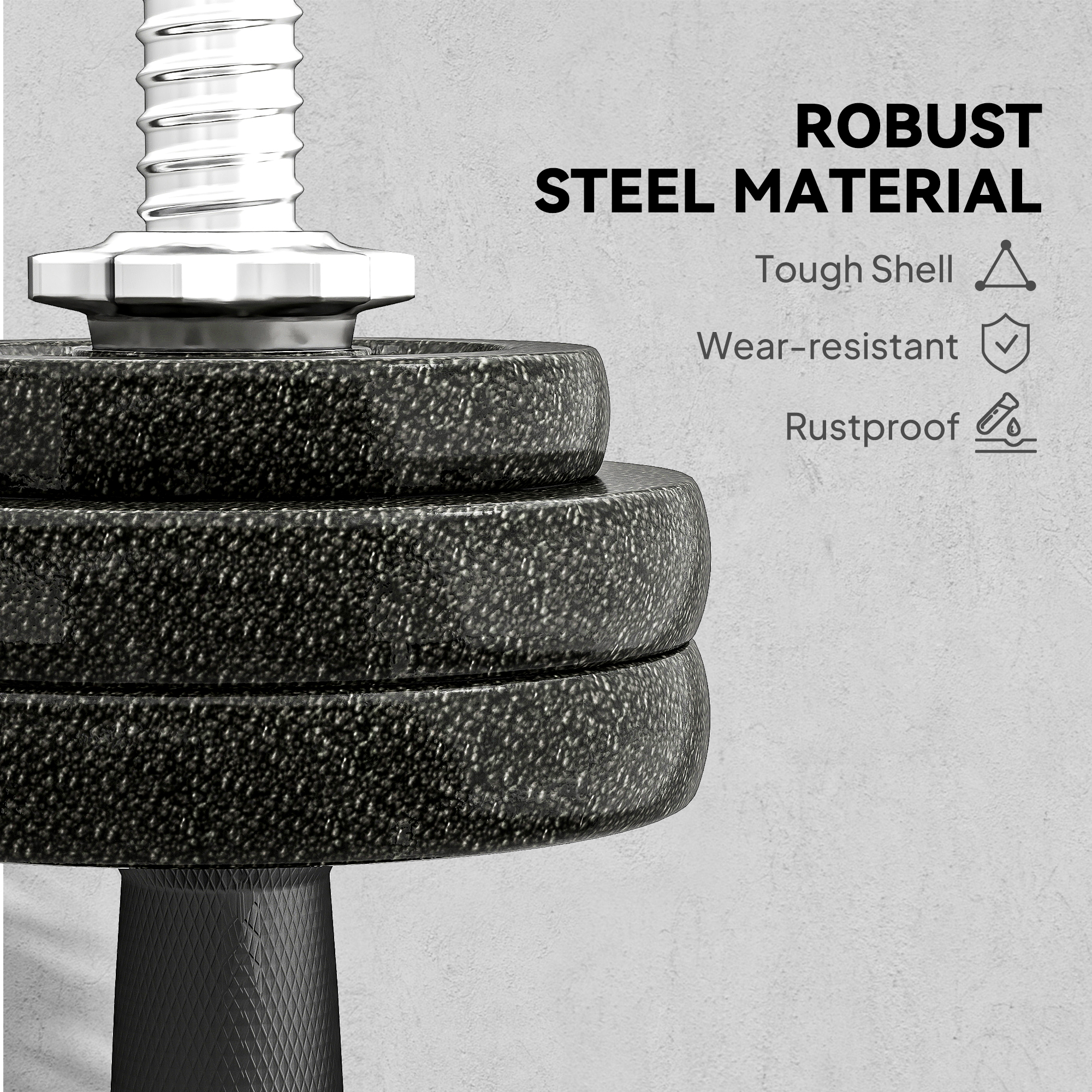 Upgrade your home gym with the SPORTNOW adjustable dumbbell and barbell set. Featuring 30 kg of total weight, this set includes 8 x 2.5 kg and 4 x 1.25 kg plates, two dumbbell bars, a barbell bar and four secure spinlocks. The knurled steel handles provide a firm, anti-slip grip, while the robust, solid steel plates ensure long-lasting use. Easy to assemble and compact for storage, it's great for beginners and strength trainers alike.