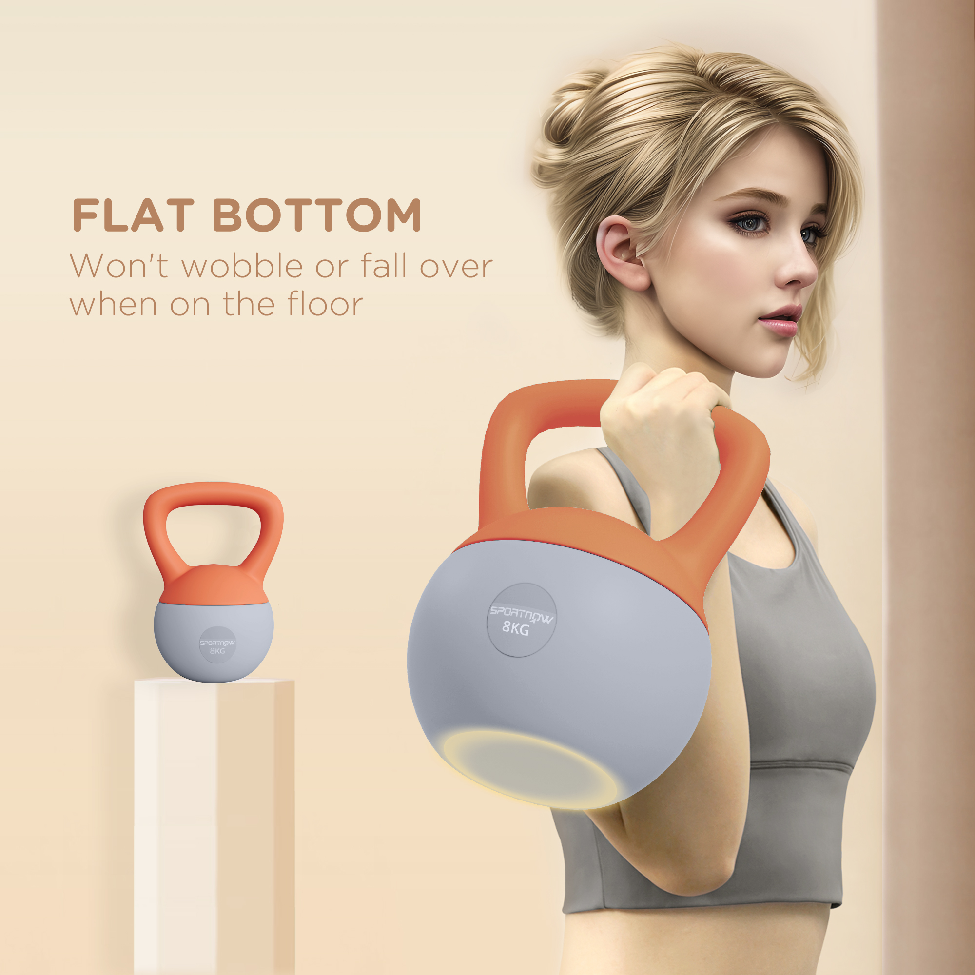Improve home workouts with the SPORTNOW 8kg kettlebell. Deadlifts, lunges, kettlebell presses and more, you'll enjoy a full body workout. A wide, non-slip handle gives you a comfortable grip, so you can confidently exercise without worrying about dropping it. Even if you drop it, its soft body and base greatly reduce the risk of injury or damage to your floor. Filled with metal sand, it brings efficiency and effectiveness to your fitness routine, making every lift a step towards your goals.
