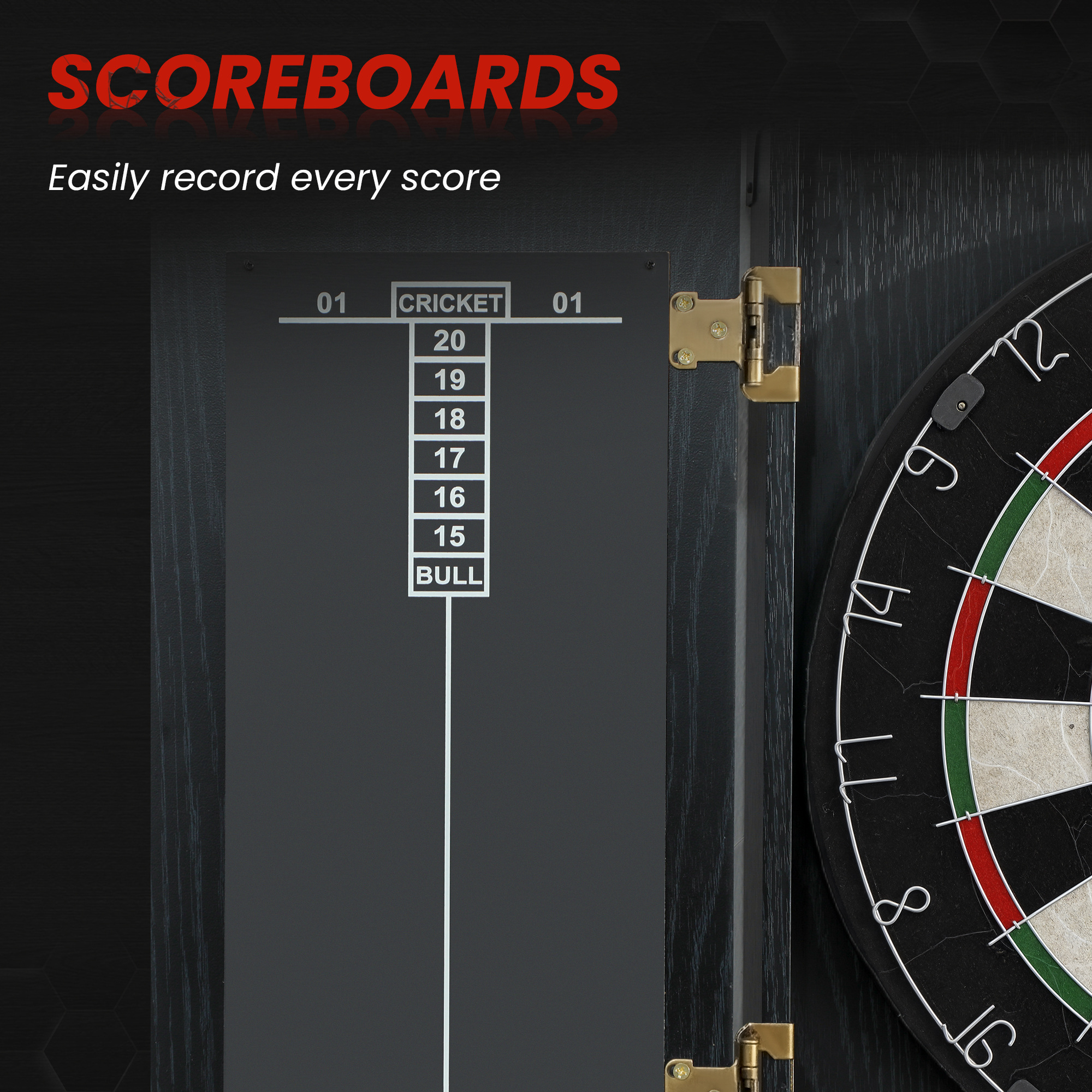 Enhance your game nights with the SPORTNOW dartboard. Housed in a protective cabinet with two side doors, you won't have to worry about stray darts damaging your walls. Keep track of scores easily with the scoreboard on each door and find out who the best dart player is. Crafted from tightly packed sisal fibres, it's great for daily play. When finished, just close the cabinet doors to prevent dust accumulation, ensuring it blends perfectly with your decor.
