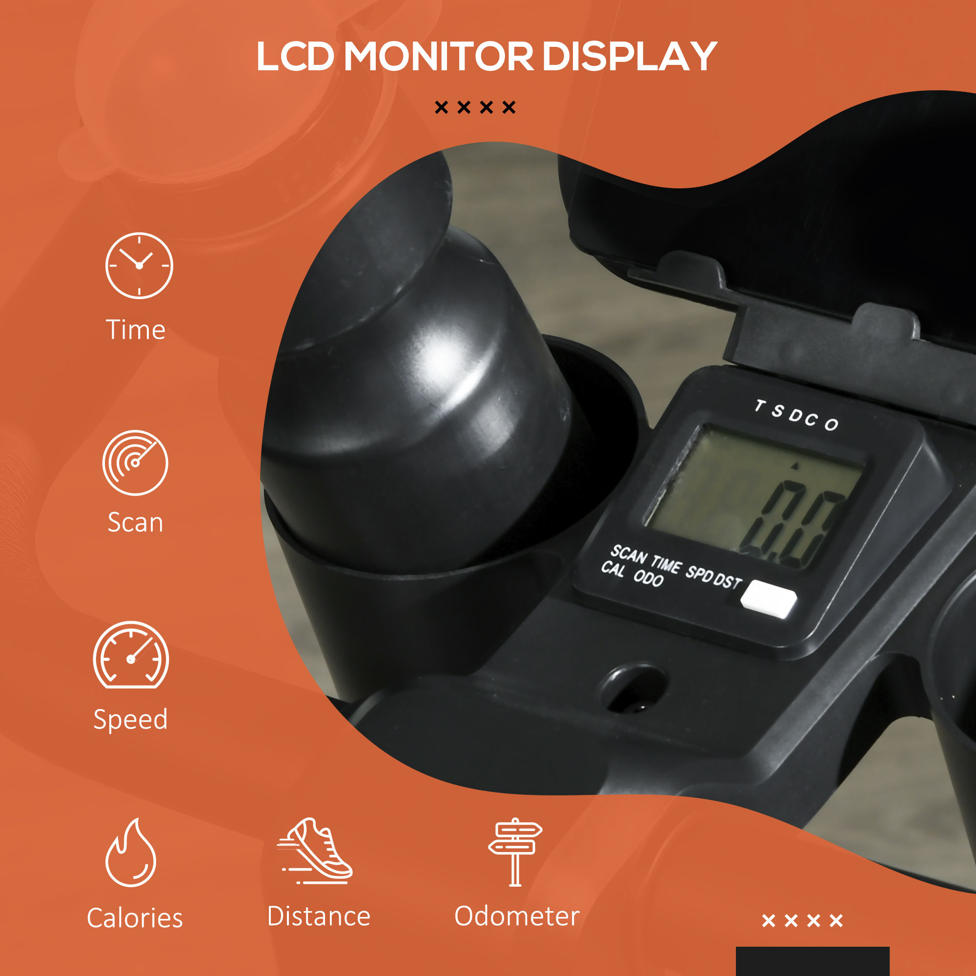 Whether you're starting your fitness journey or a pro, this SPORTNOW fitness bike will meet your exercise needs. With adjustable resistance, you'll choose a setting you're comfortable with – once it becomes easy, raise the level. Both the seat and handle height can be adjusted – no matter your height, this static bike works for you. Keep track of your progress with the LCD monitor, which displays time, speed, distance, odometer and calories burned. Improve your cardio and stay active at home.