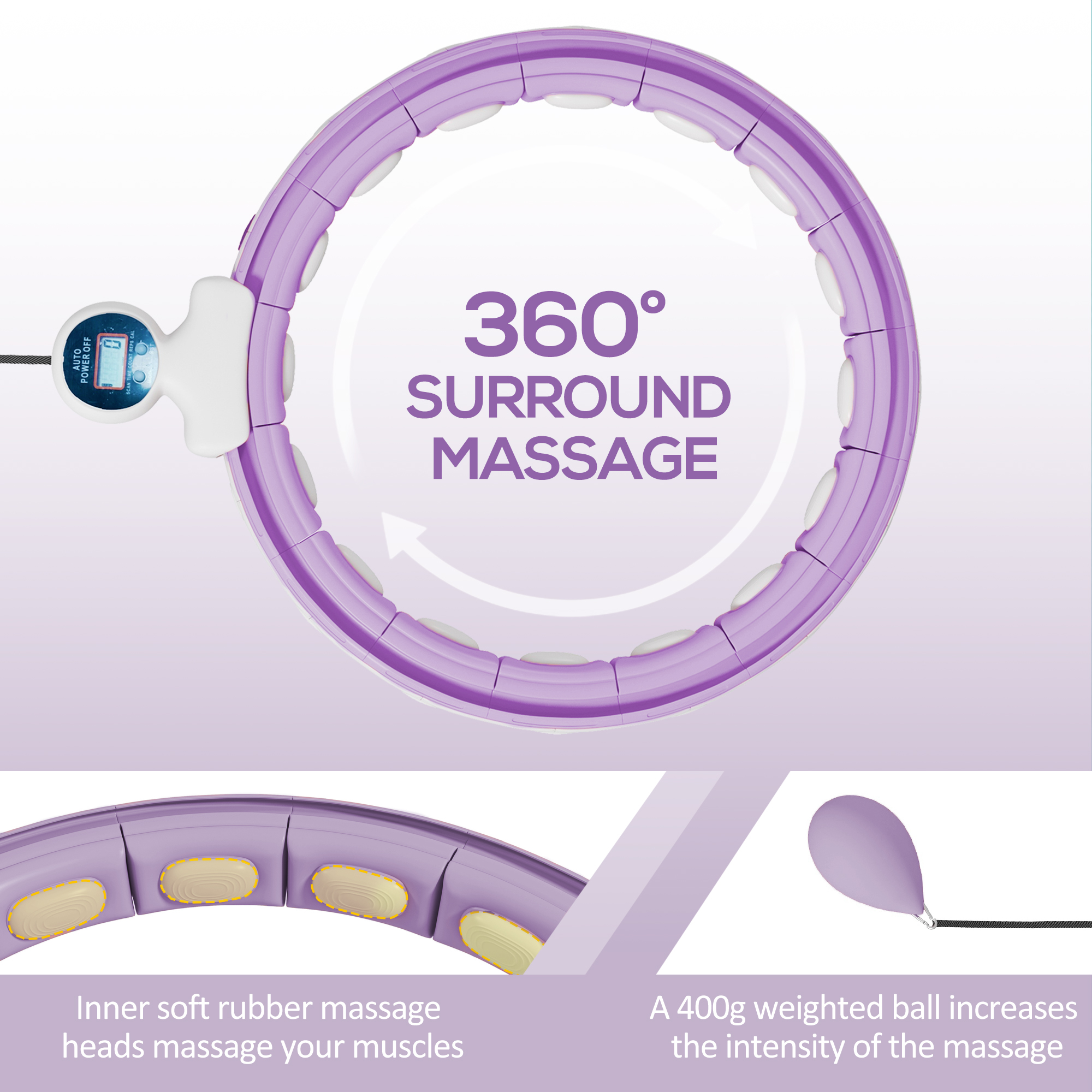 SPORTNOW Smart Weighted Hula Hoop, Massage Hula Ring W/ 16 Detachable Knots, 360° Auto-Rotating Ball, Digital Counter, Purple