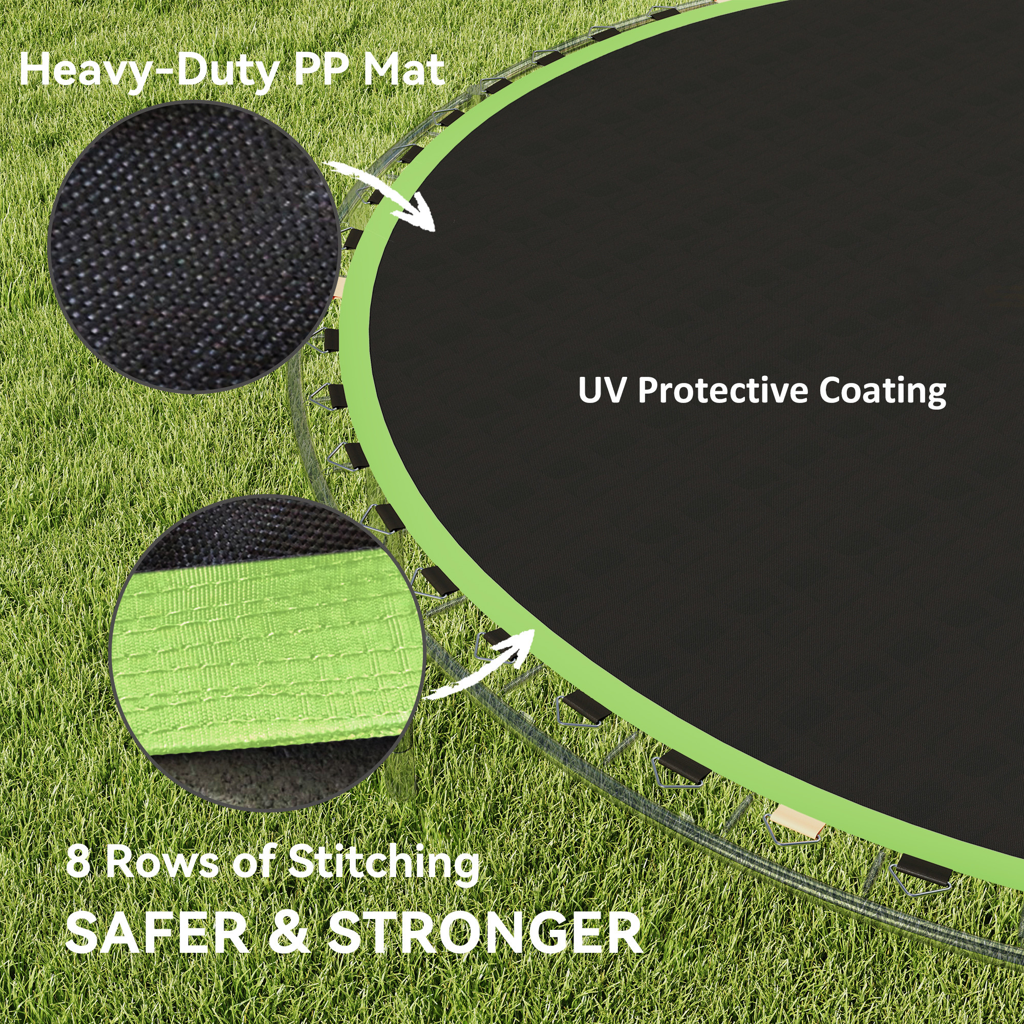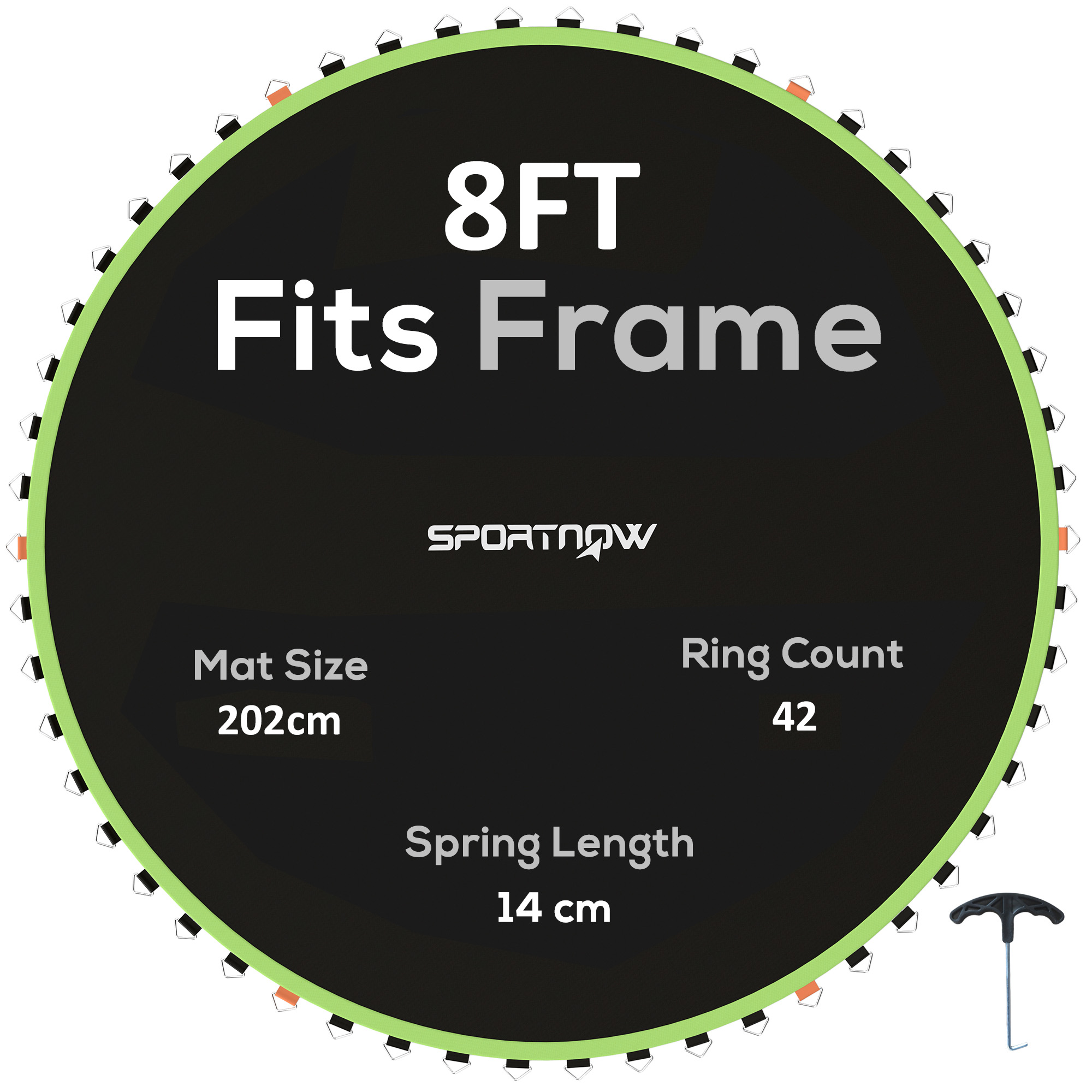 Tired of constantly replacing your trampoline mat? This SPORTNOW mat is your solution. With eight rows of heavy stitching for durability, its water-resistant PP material is easy to clean and maintain. With 42 V-rings included, it's suitable for a 8ft round trampoline using 14cm springs. Ensure a proper fit by measuring your trampoline frame, counting the number of springs and measuring the length of unstretched springs. Get ready for bigger and better jumps with this resilient mat.