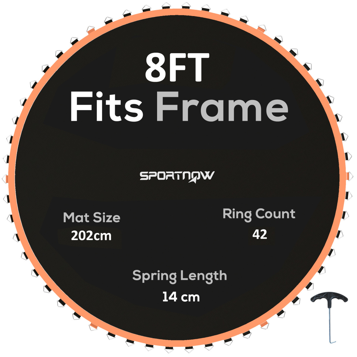Tired of constantly replacing your trampoline mat? This SPORTNOW mat is your solution. With eight rows of heavy stitching for durability, its water-resistant PP material is easy to clean and maintain. With 42 V-rings included, it's suitable for a 8ft round trampoline using 14cm springs. Ensure a proper fit by measuring your trampoline frame, counting the number of springs and measuring the length of unstretched springs. Get ready for bigger and better jumps with this resilient mat.