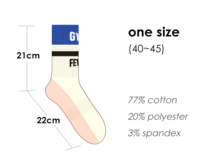 one size(40~45)Socks body:77% cotton20% polyester3% spandex