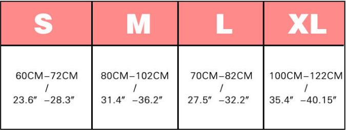 Specifications: S, M, L, XL