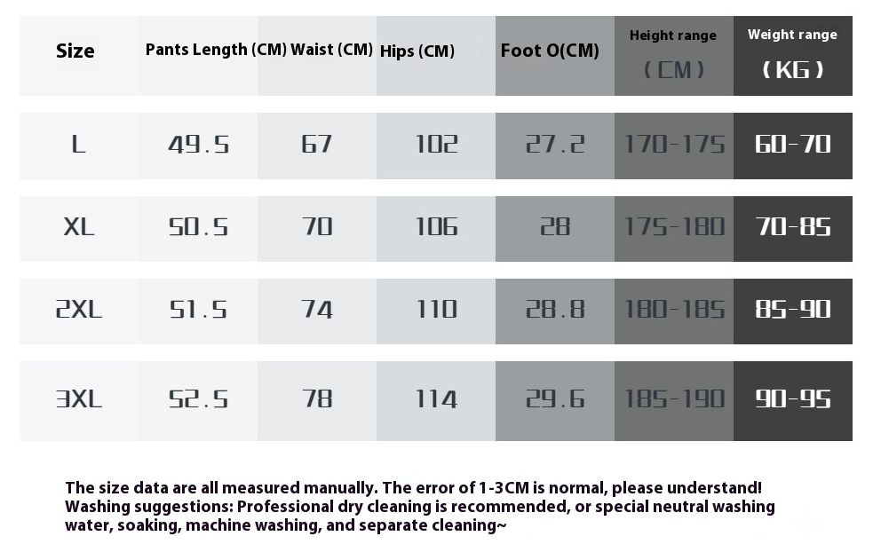 Color: white clothes black pants, white clothes dark gray pants, dark blue clothes black pants, dark blue clothes dark gray pants, black clothes black pants, black clothes dark gray pants, dark gray clothes black pants, dark gray clothes dark gray pants
