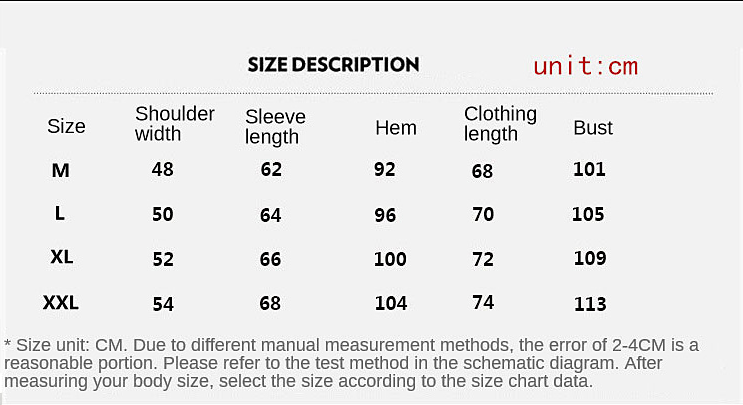 1. Asian sizes are 1 to 2 sizes smaller than European and American. If your size is between the two sizes, please choose the larger size. Due to manual measurement, please allow 2-3cm difference.