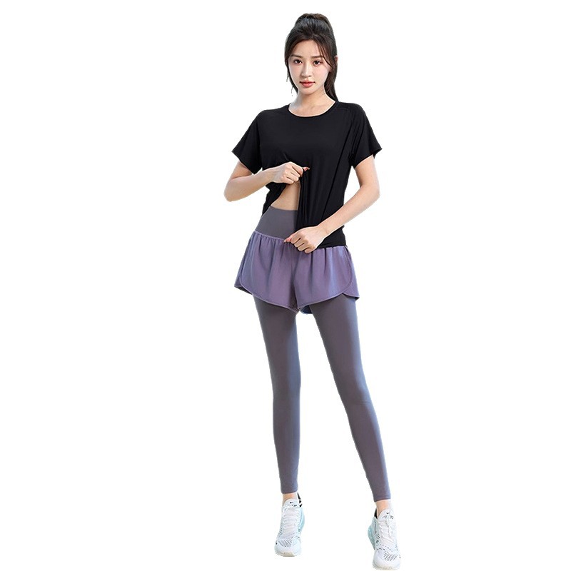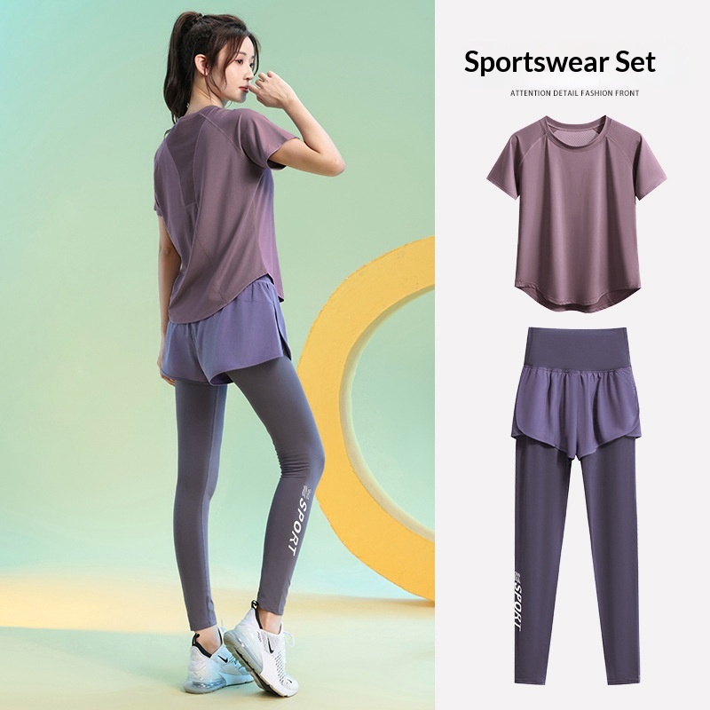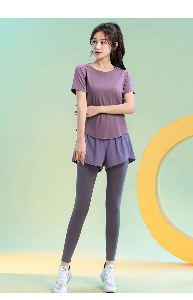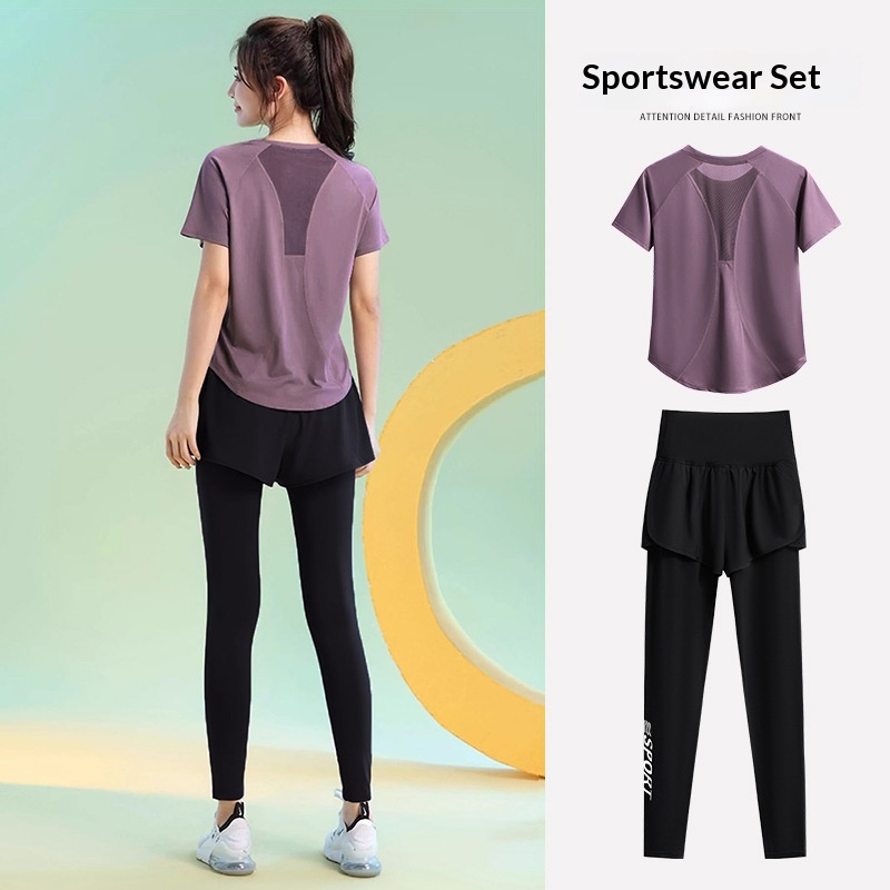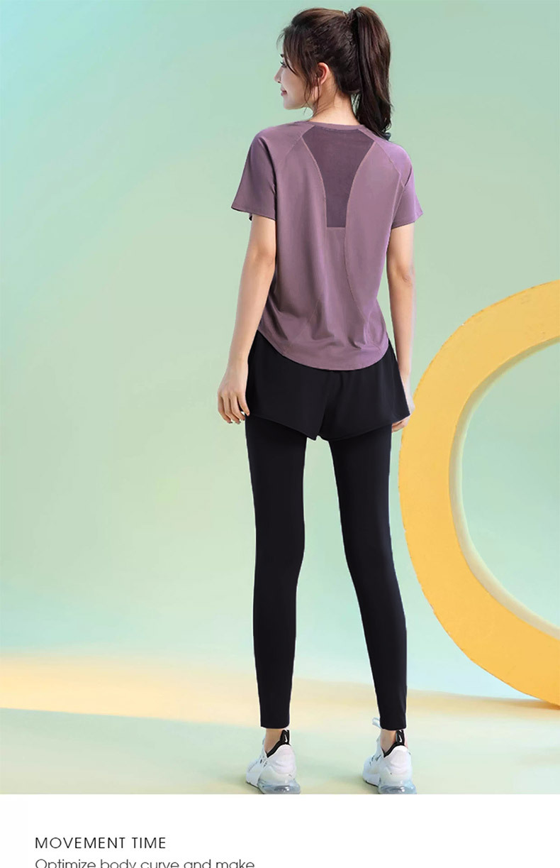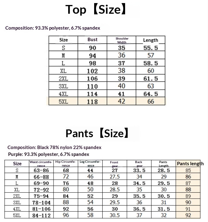 Color: Black [top], greyish purple [top], Black [trousers], purple [trousers]]