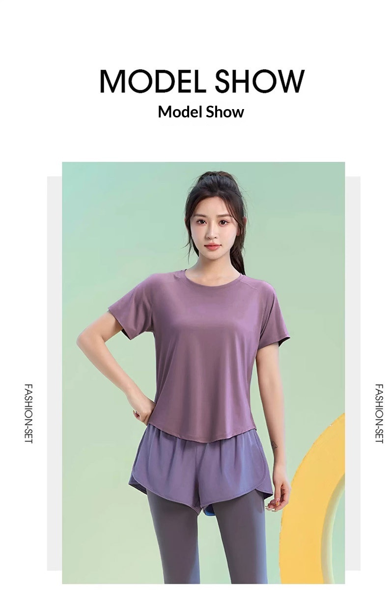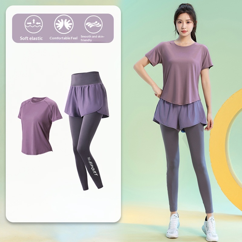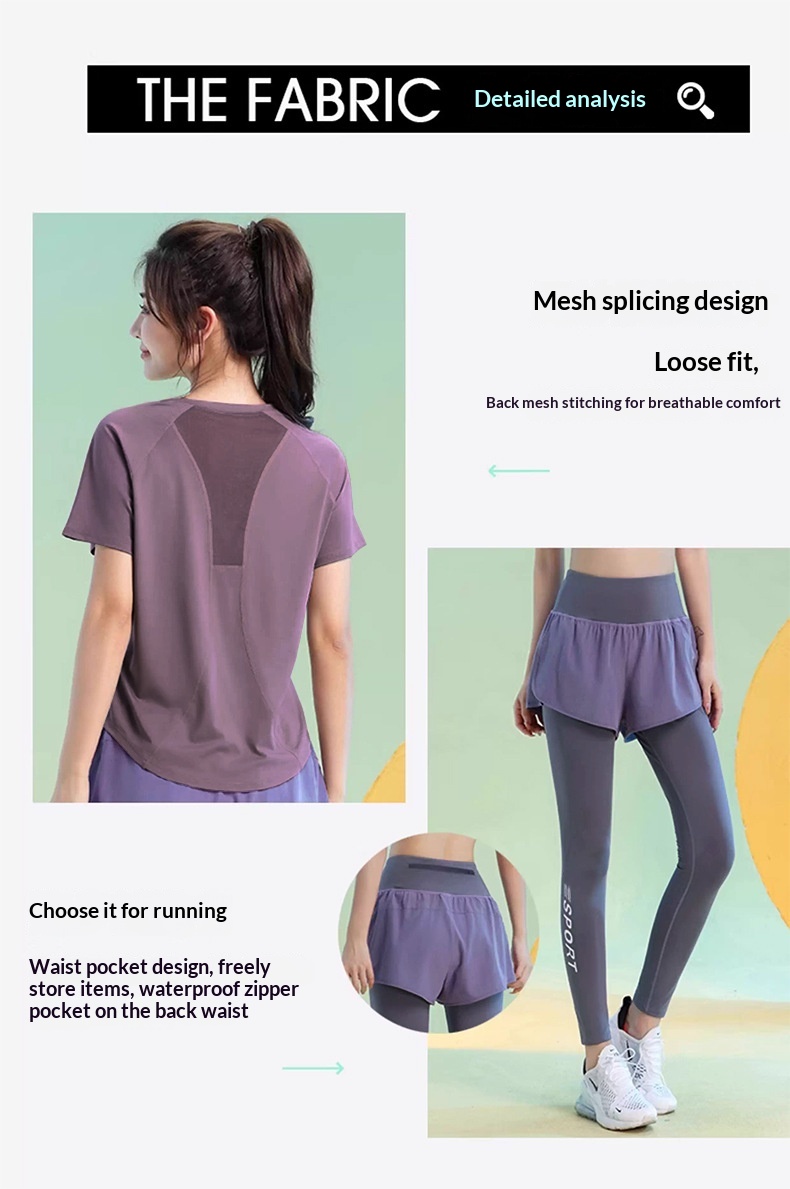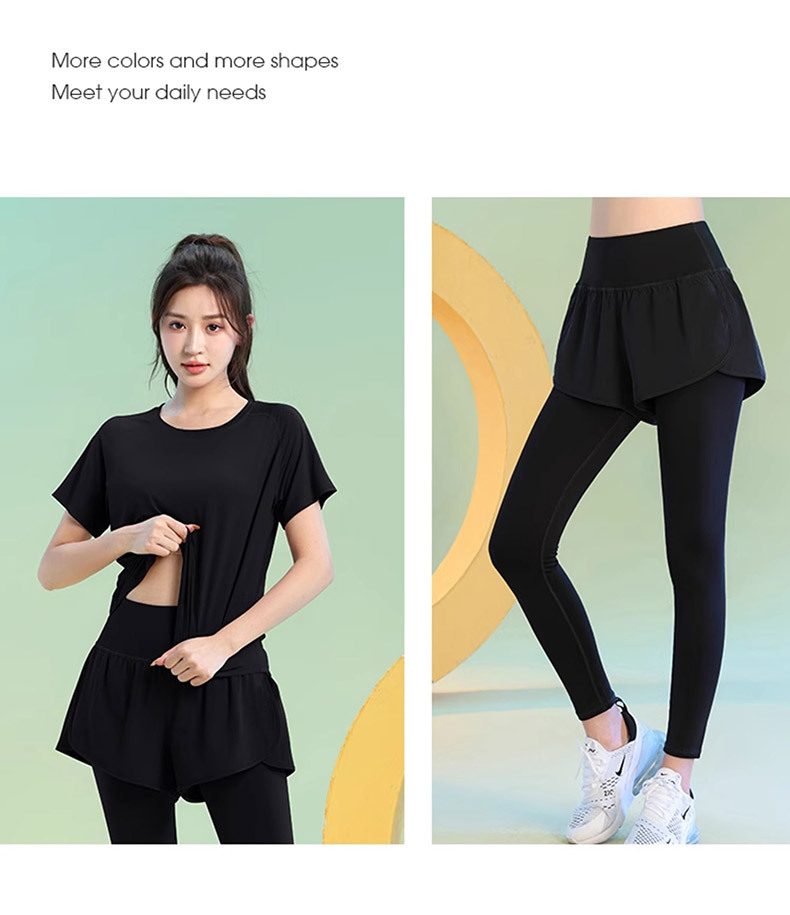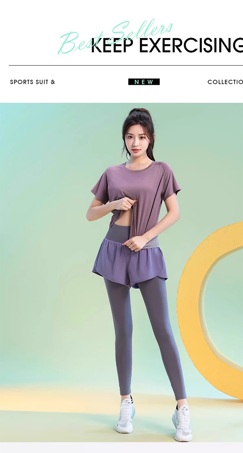 Color: Black [top], greyish purple [top], Black [trousers], purple [trousers]]