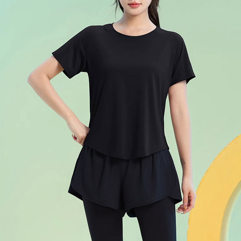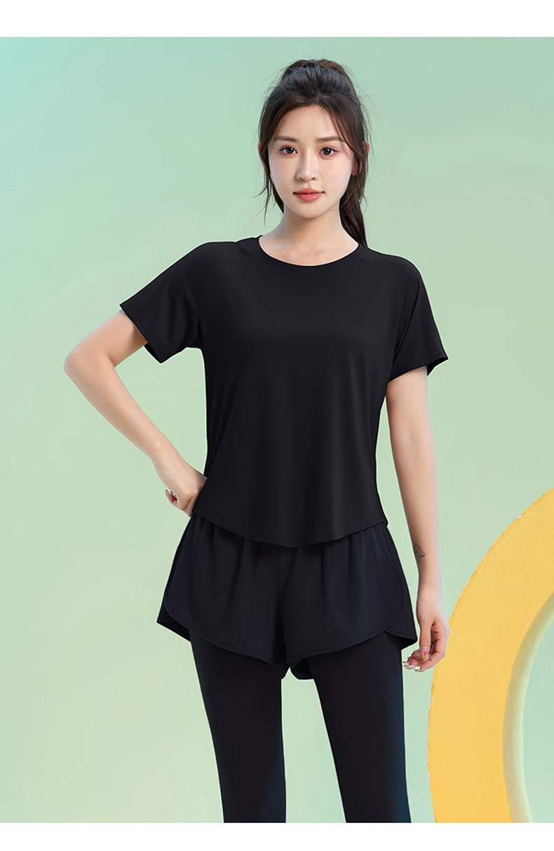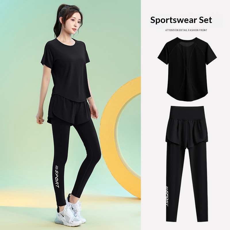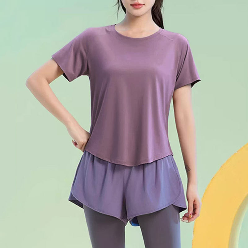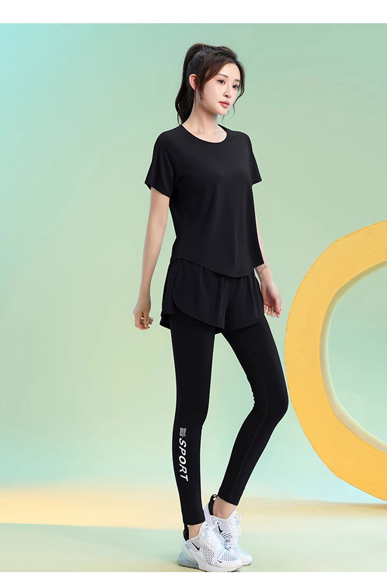 Color: Black [top], greyish purple [top], Black [trousers], purple [trousers]]