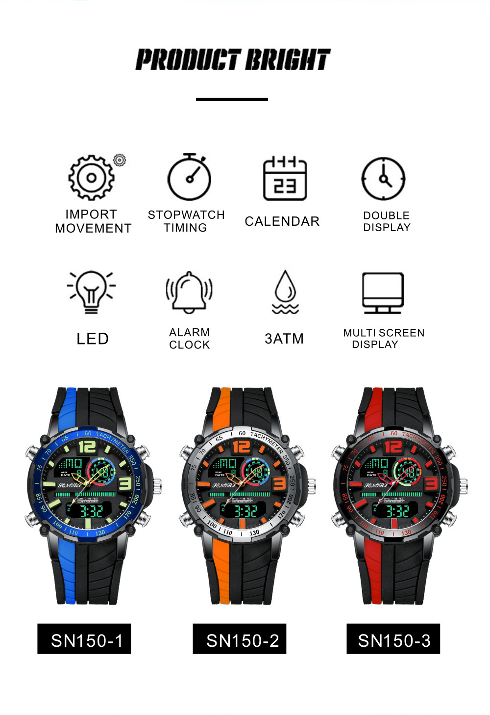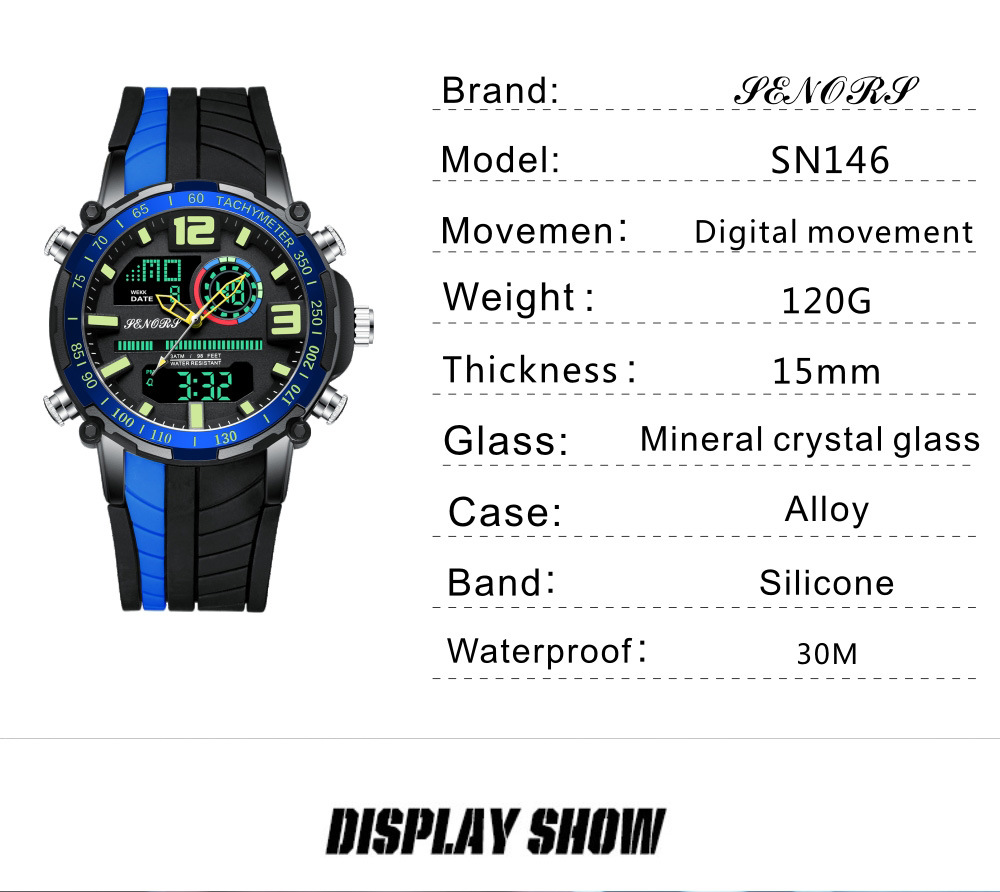 Movement: quartz + electronic movement (day, date, hour, minute, second, small second)