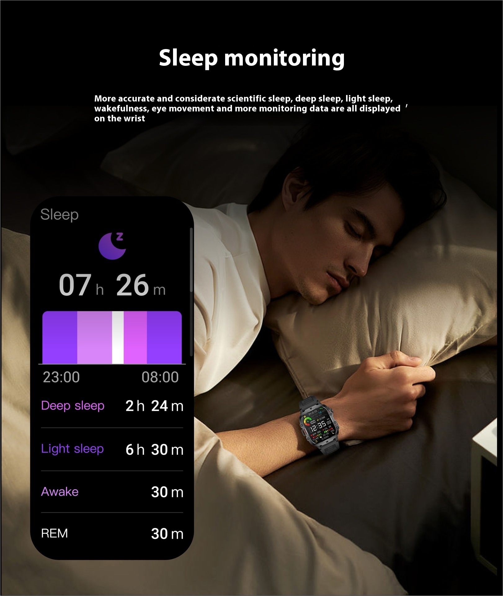 Functions: Waterproof, step counting, heart rate monitoring, blood pressure measurement, social entertainment, Bluetooth calling, smart reminder, remote control selfie, sleep monitoring