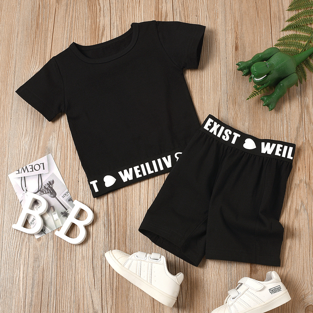 Sports Style Letter Short Sleeve Two-piece Set