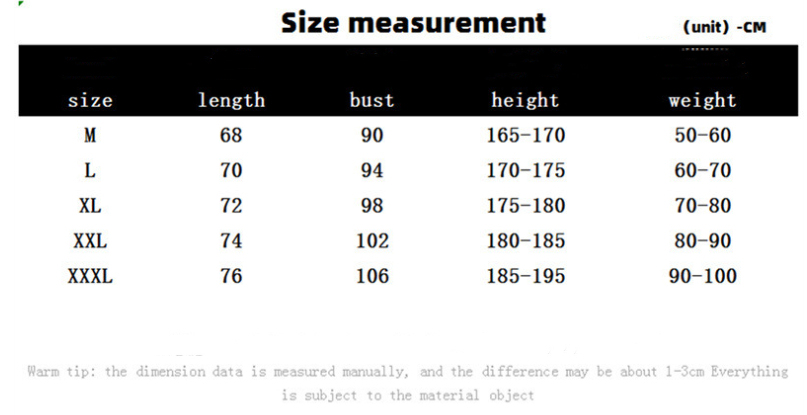 1. Asian sizes are 1 to 2 sizes smaller than European and American people. Choose the larger size if your size between two sizes. Please allow 2-3cm differences due to manual measurement. 2. Please check the size chart carefully before you buy the item, if you don't know how to choose size, please contact our customer service. 3.As you know, the different computers display colors differently, the color of the actual item may vary slightly from the following images.