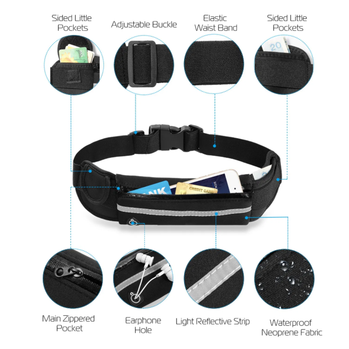 *User-Friendly Reflective Strip*:The special reflective strip on our running belt will alert pedestrians(by reflecting light) on your opposite direction to keep you safe,when you are running under a dim environment.