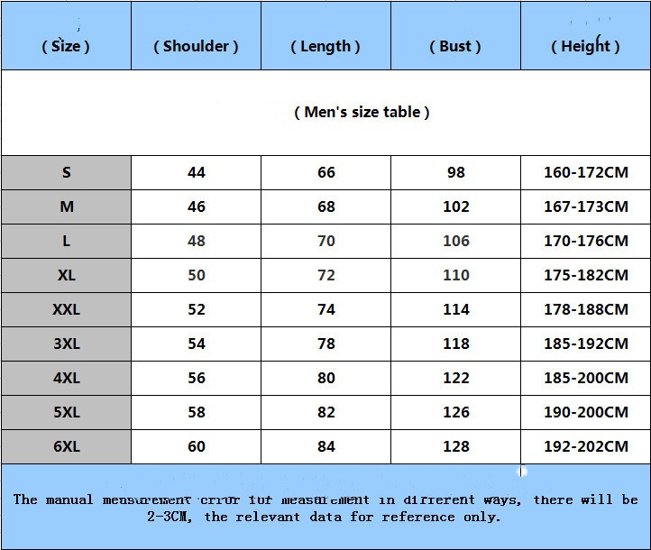 Size: S,M,L,XL,XXL,3XL,4XL,5XL,6XL
