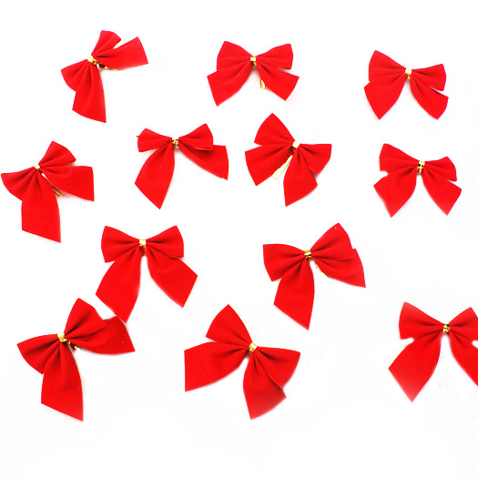 Spot Red Small Bowknot 5cm Christmas Flocking Golden Bow Christmas Tree Package Accessories Silver Bow