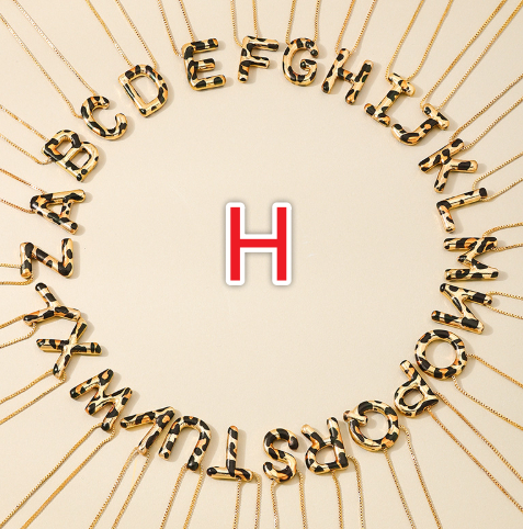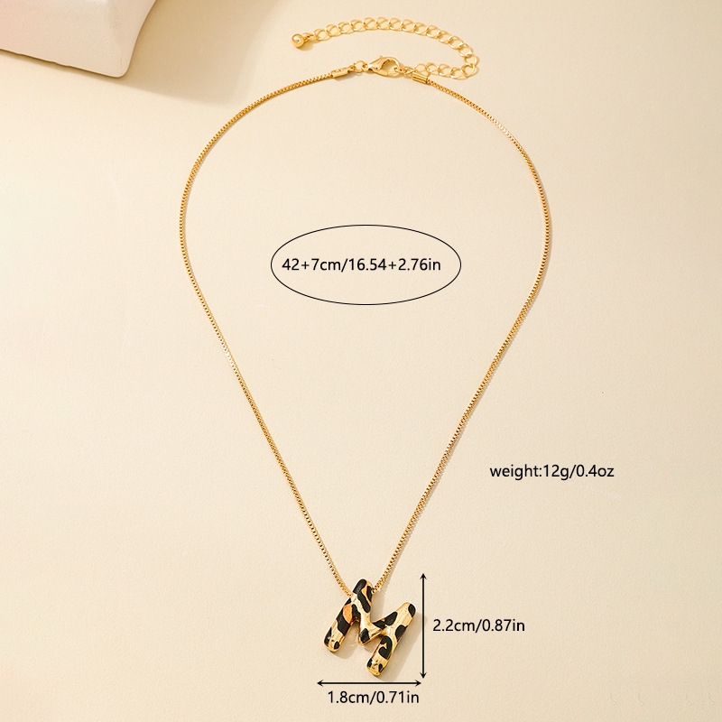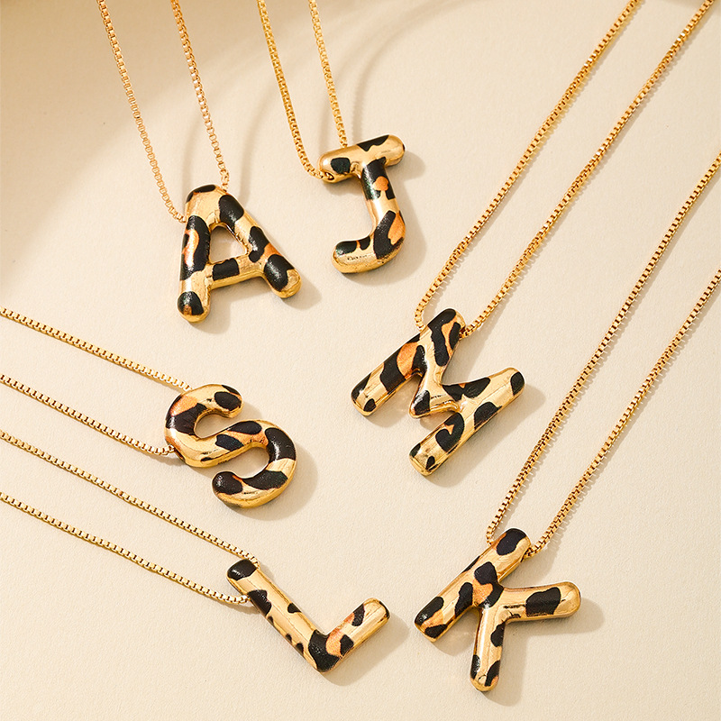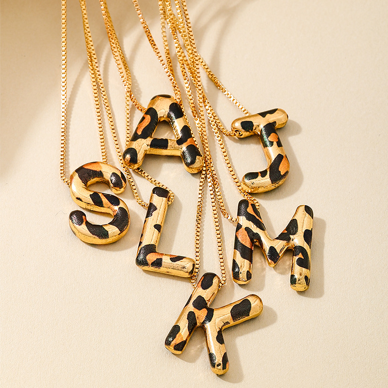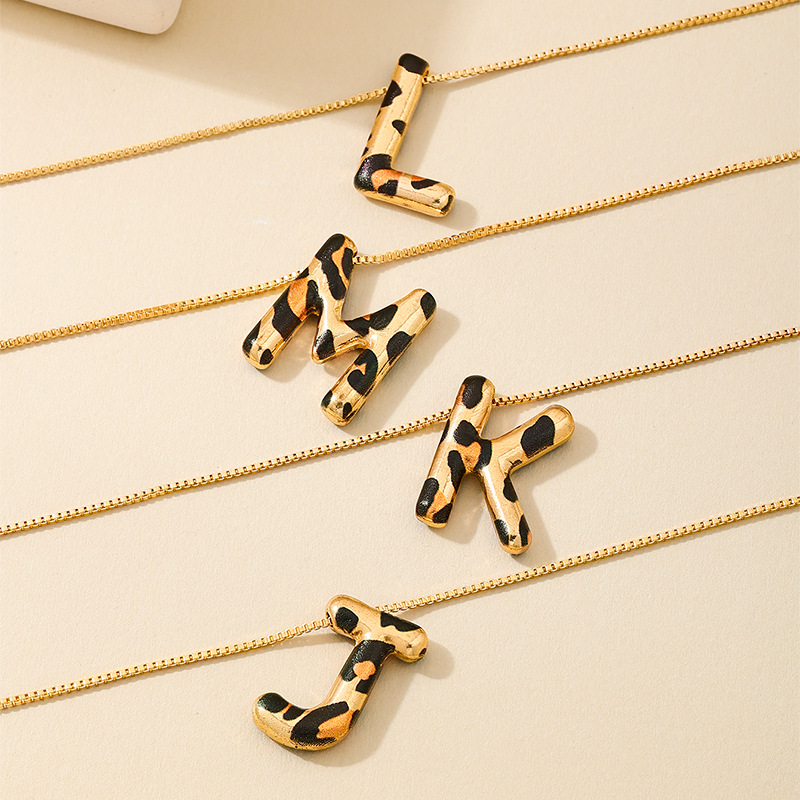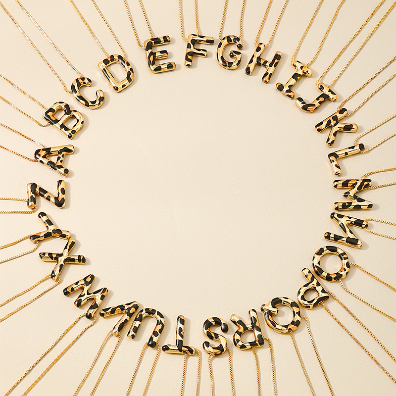Spotted Leopard-Print Metal 26-Letter Alphabet Necklace For Women