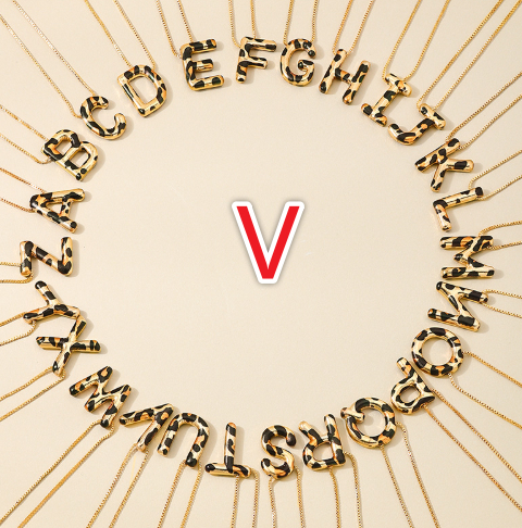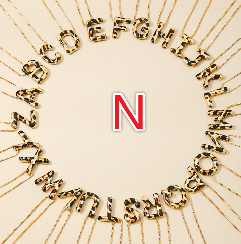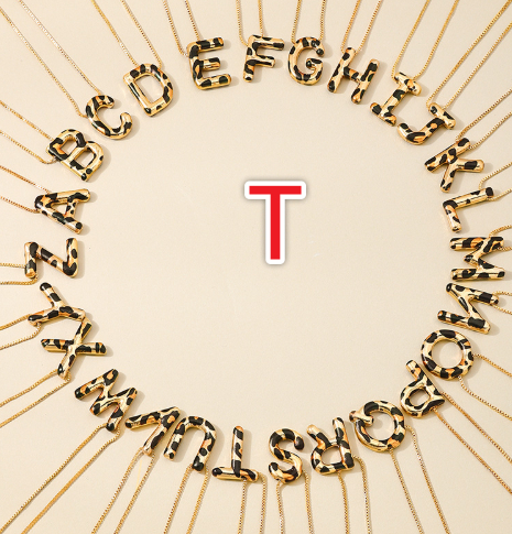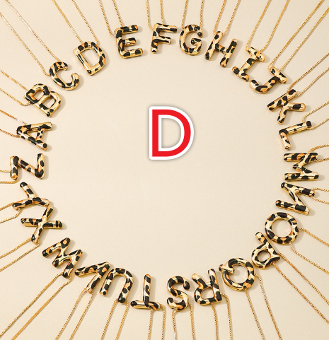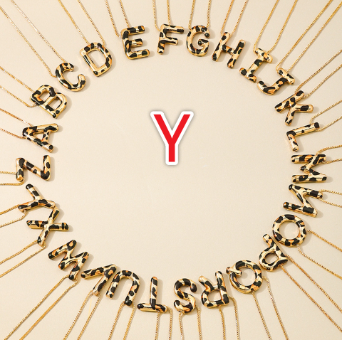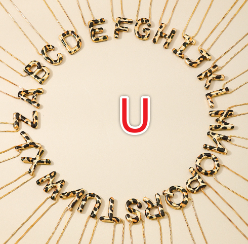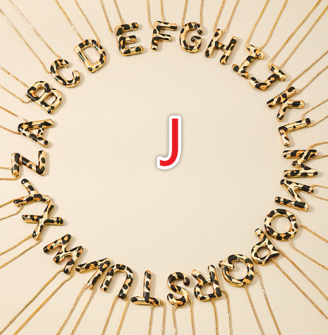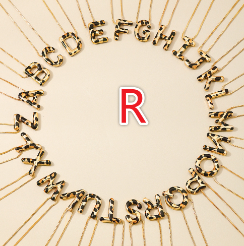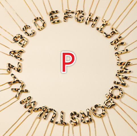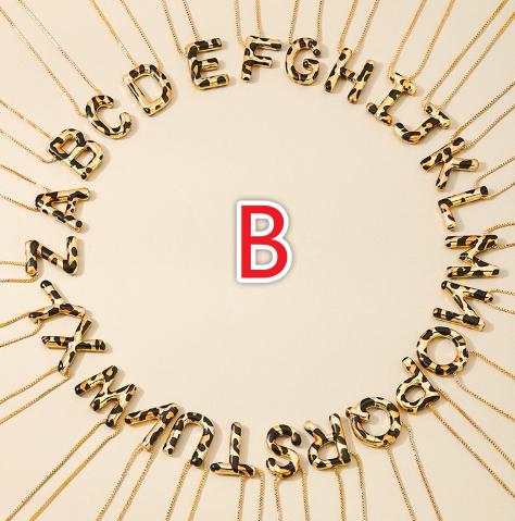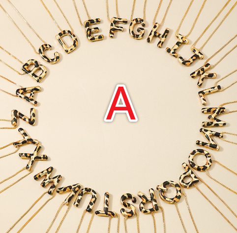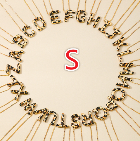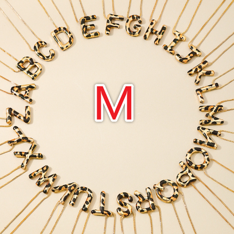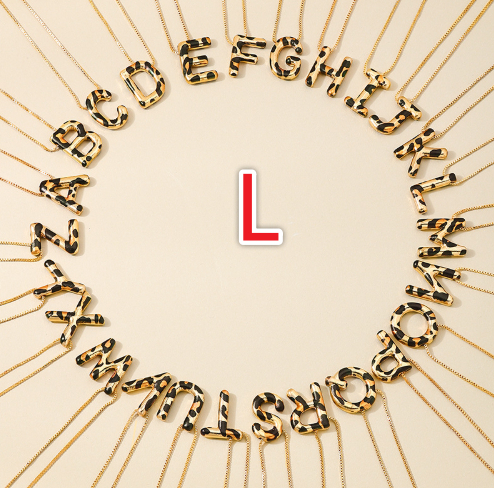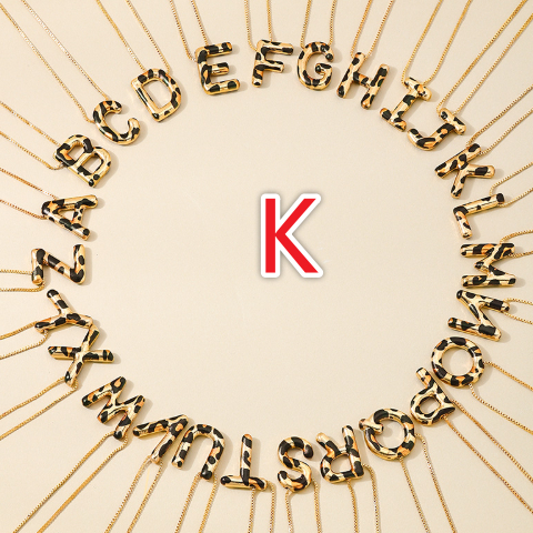 Spotted Leopard-Print Metal 26-Letter Alphabet Necklace For Women