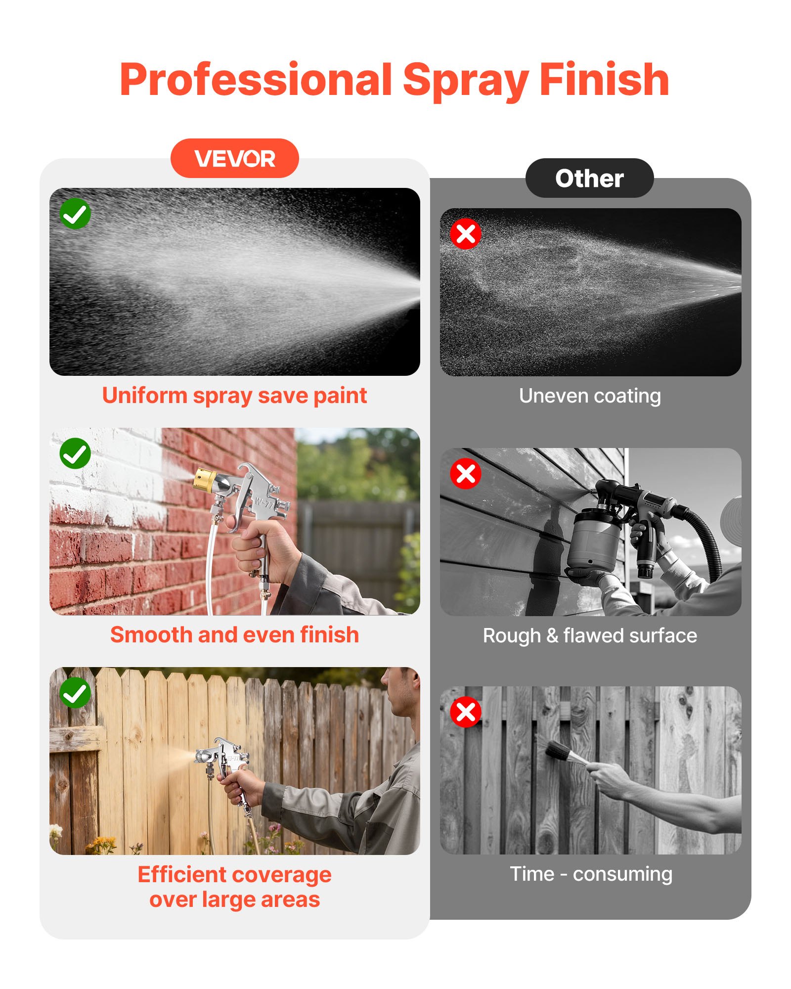 Dual Adjustable Guns: Two adjustable guns (1.8mm & 3.0mm) support control of spray width, paint flow, and air pressure, enabling both detailed and broad spraying. The central pneumatic spray gun ensures efficient, versatile performance on furniture, walls, fences, and automotive surfaces