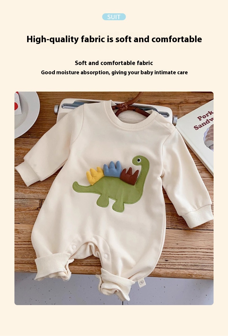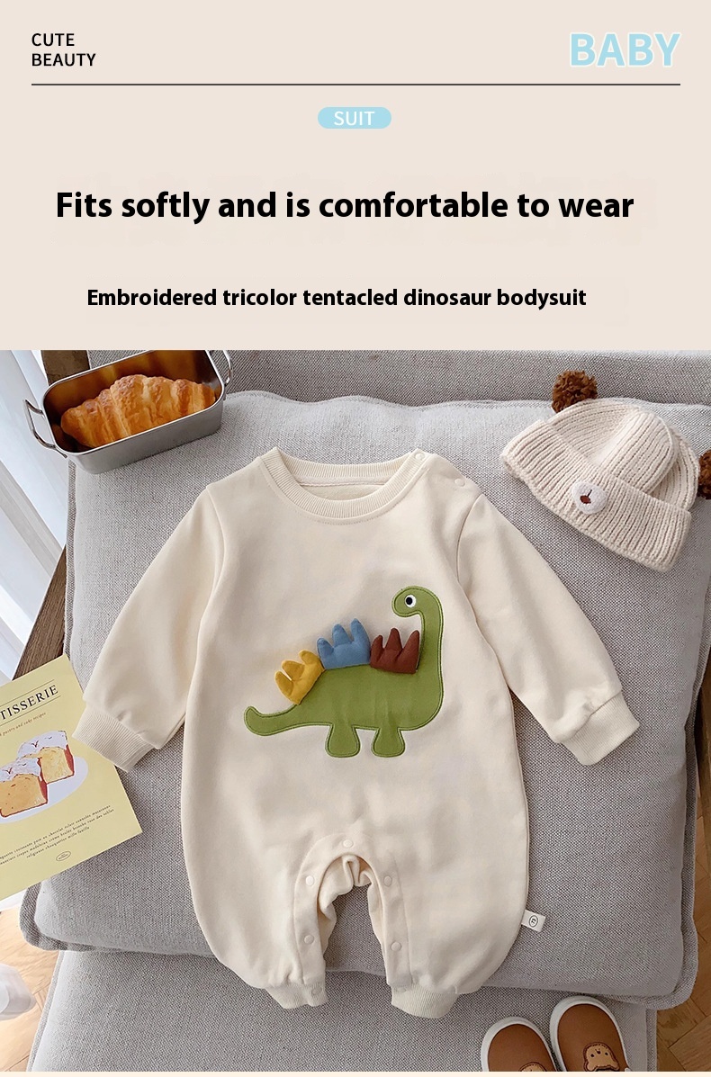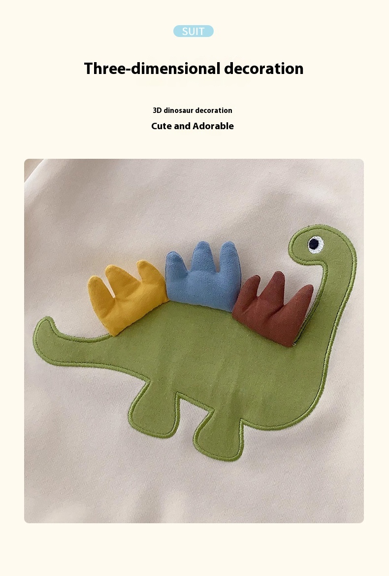 Color: embroidered three-color antenna dinosaur jumpsuit