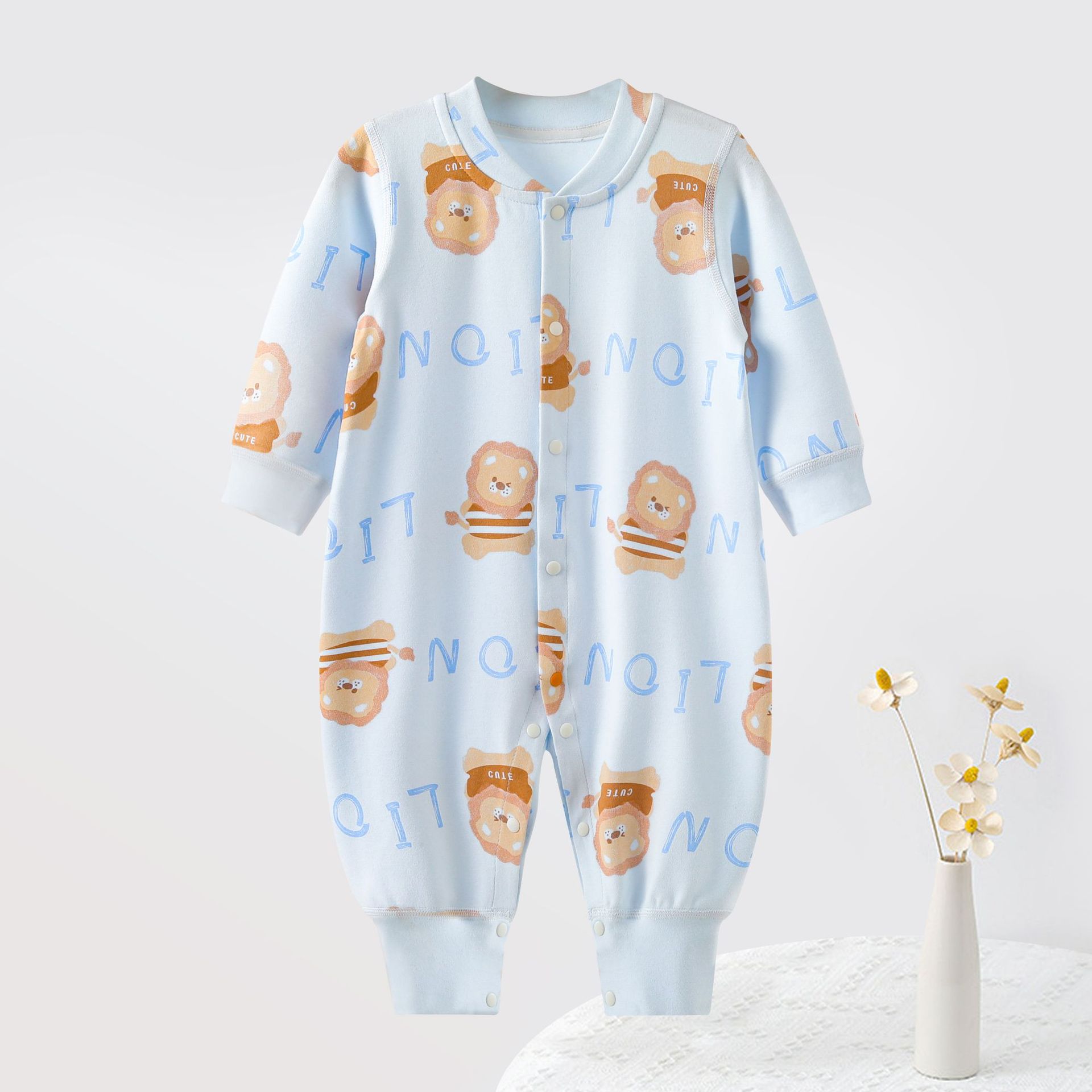 Color: Cute Lion doll Youke silk long-sleeve jumpsuit beige, cute lion doll Youke silk long-sleeve jumpsuit Blue