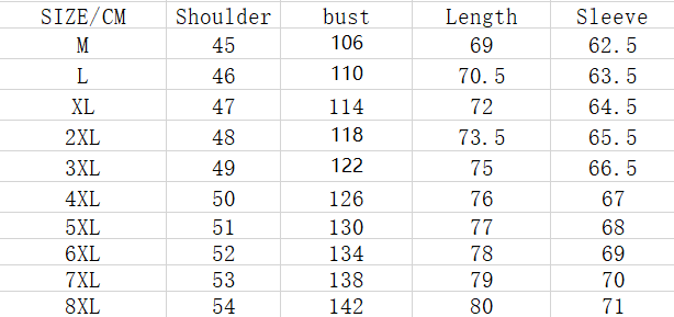 Size: M,L,XL,XXL,XXL,XXXXL,5XL,6XL,7XL,8XL