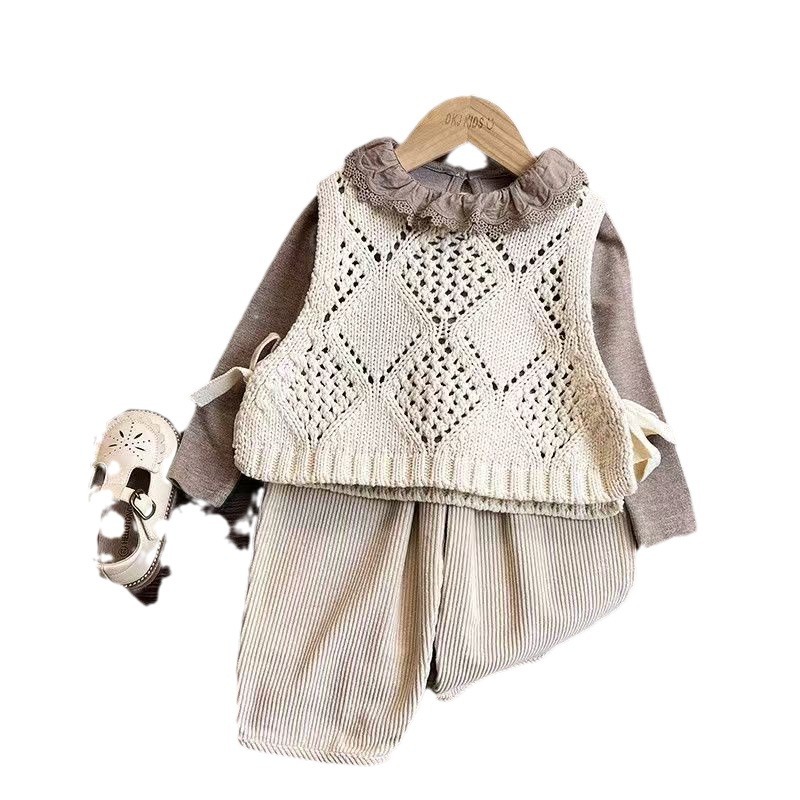 Color: khaki Mori style three-piece suit, one-piece vest