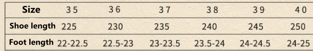 Sizes: 35, 36, 37, 38, 39, 40, 41, 42