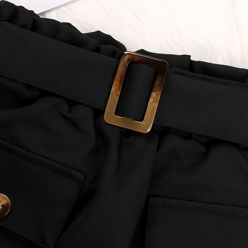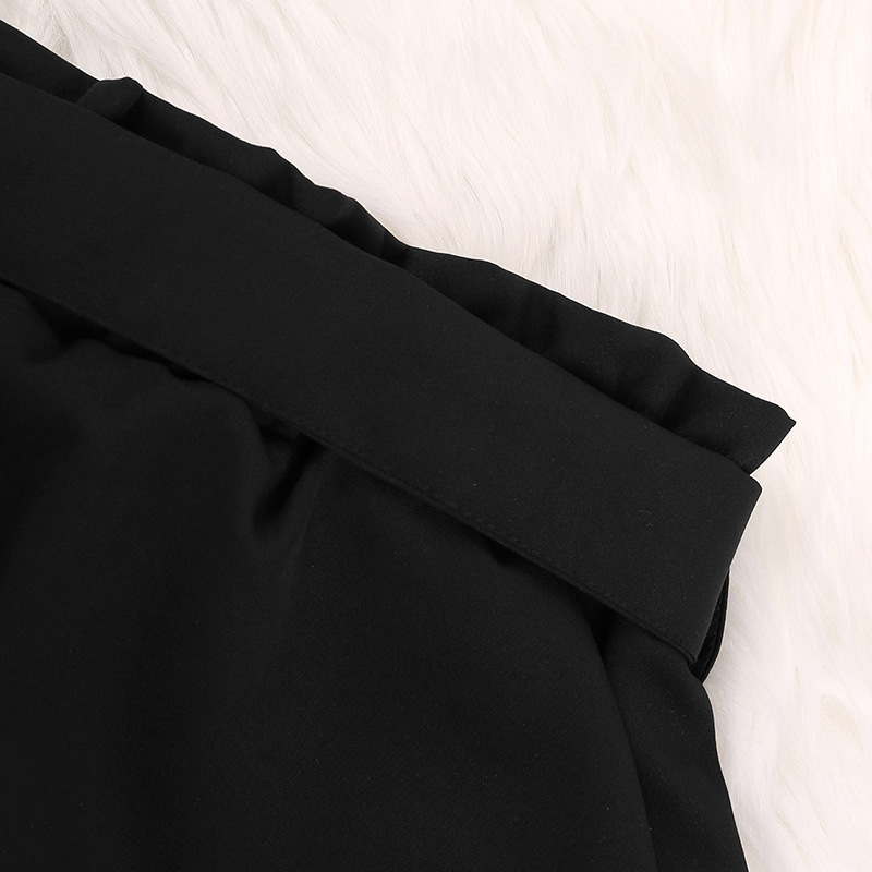 Spring And Autumn Long Sleeve Shirt Cotton Black Shorts