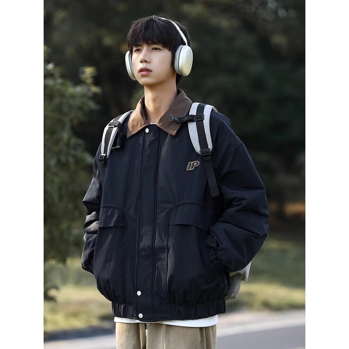 Color: navy blue, brown