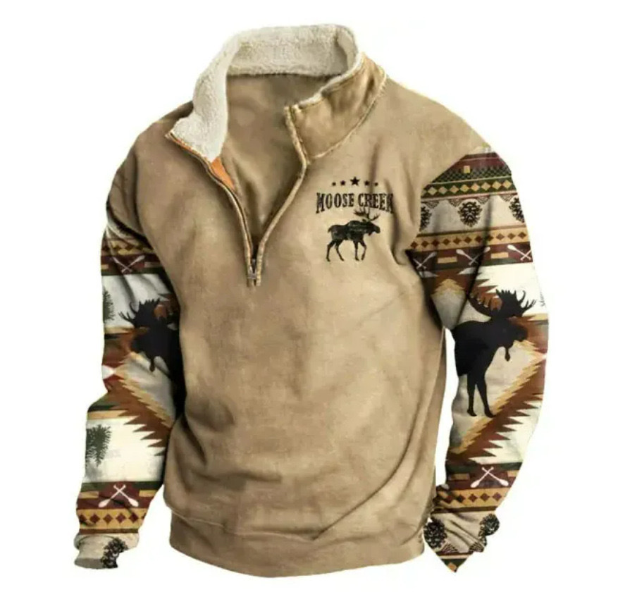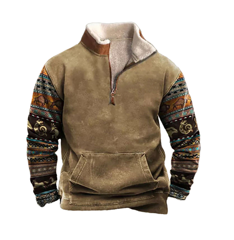 Spring And Autumn Men's Long Sleeves Half Zipper Printed Casual Fashion Jacket Coat