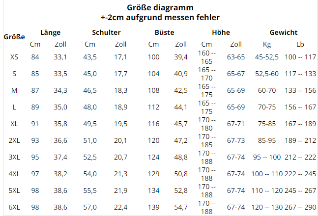 Size: M/L/XL/XXL/3XL/4XL/5XL/6XL/7XL/8XL