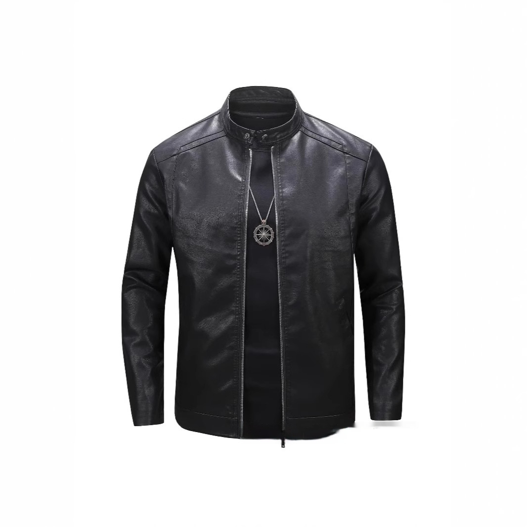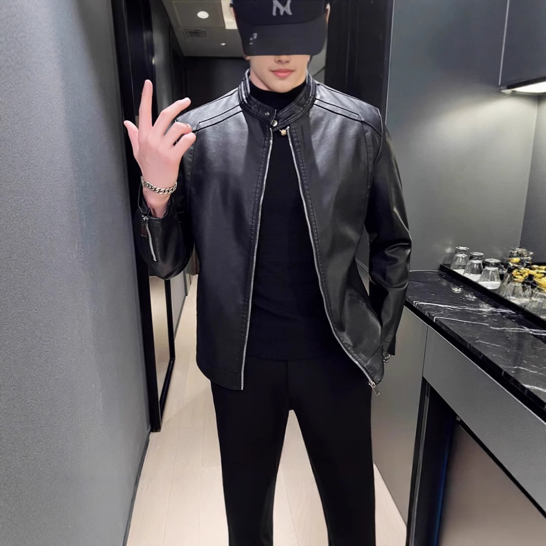 Spring And Autumn Men's Slim Leather Clothing With Stand Collar Jacket