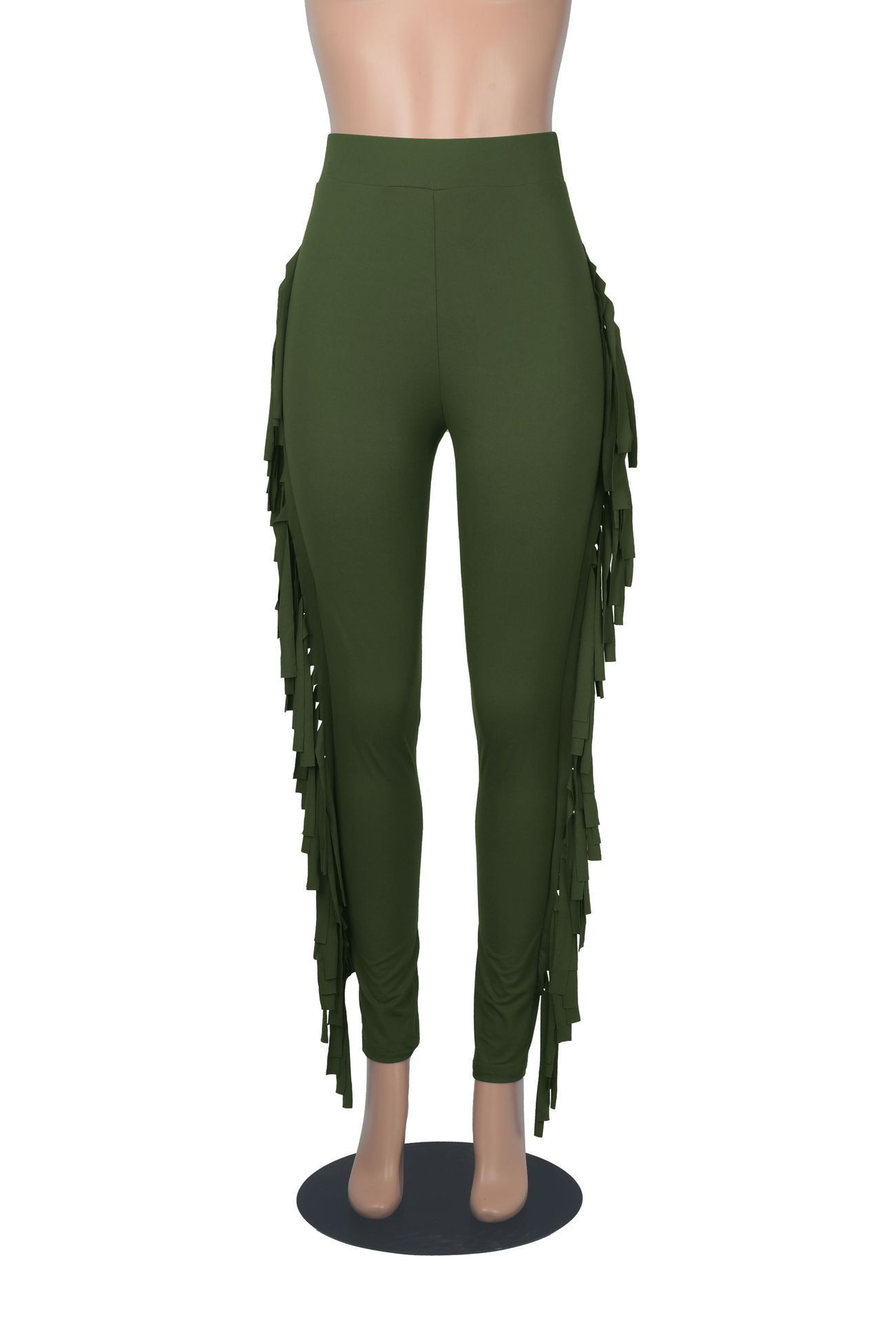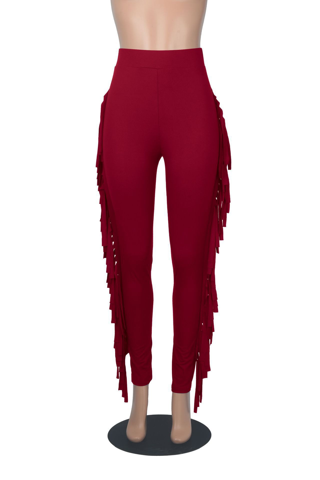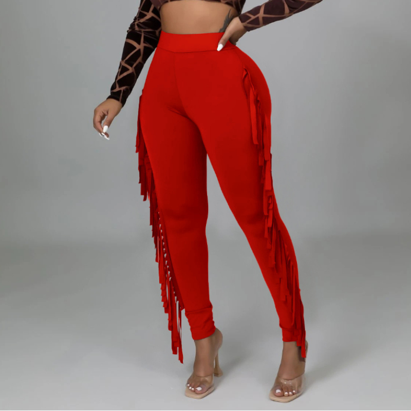 Spring And Autumn New European And American Women's Clothing Tight High Waist Tassel Bandage Pants
