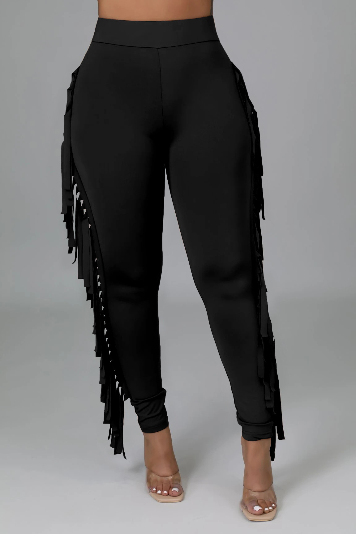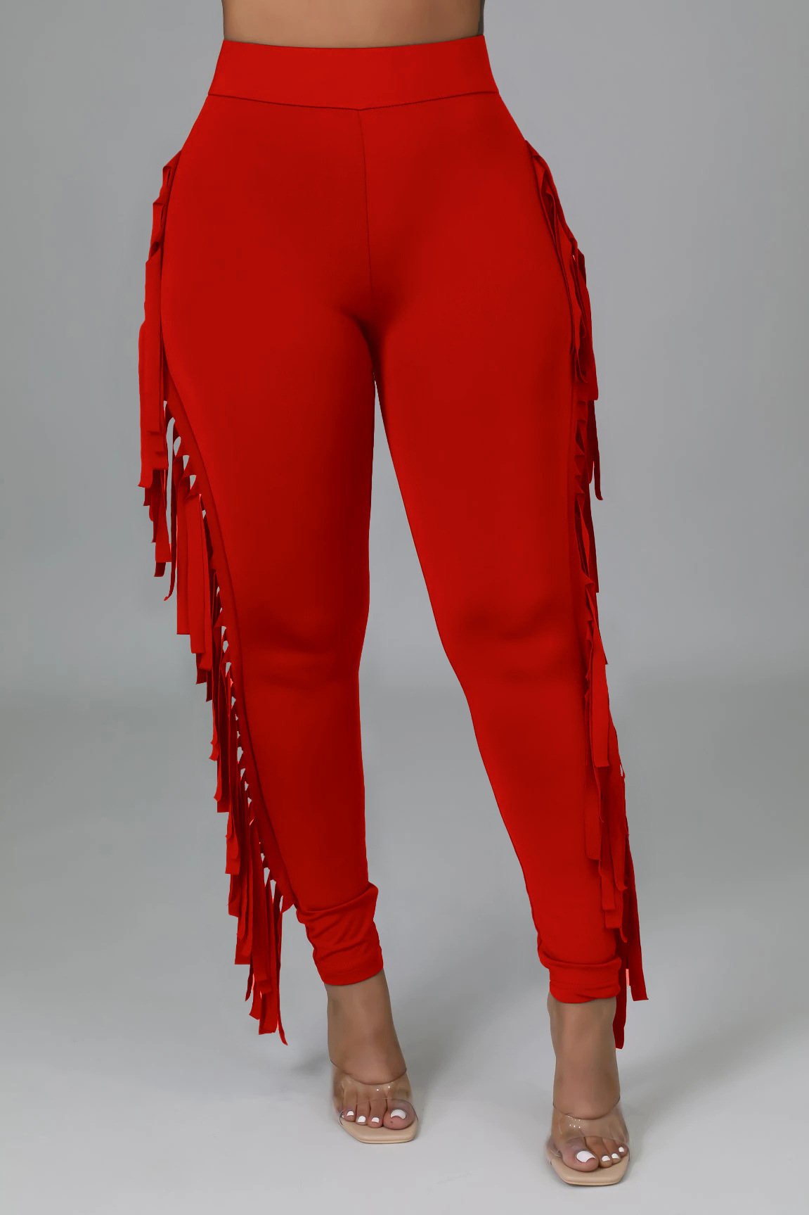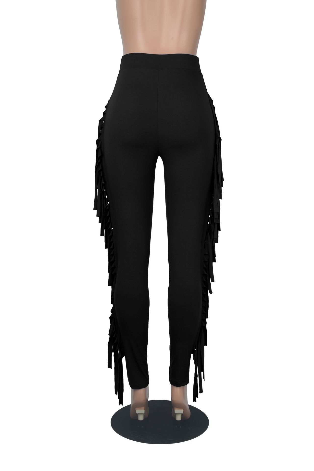 Spring And Autumn New European And American Women's Clothing Tight High Waist Tassel Bandage Pants