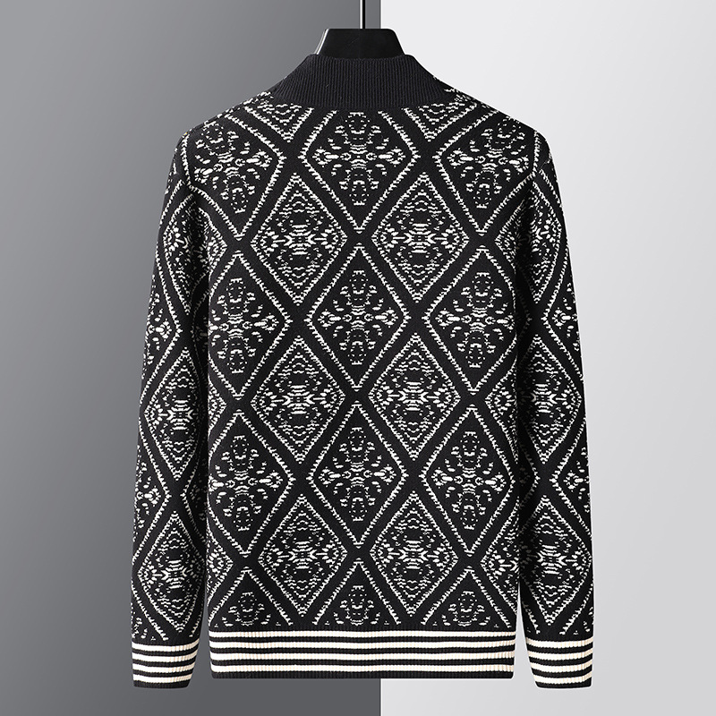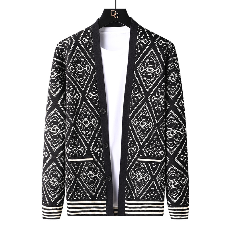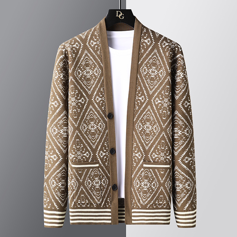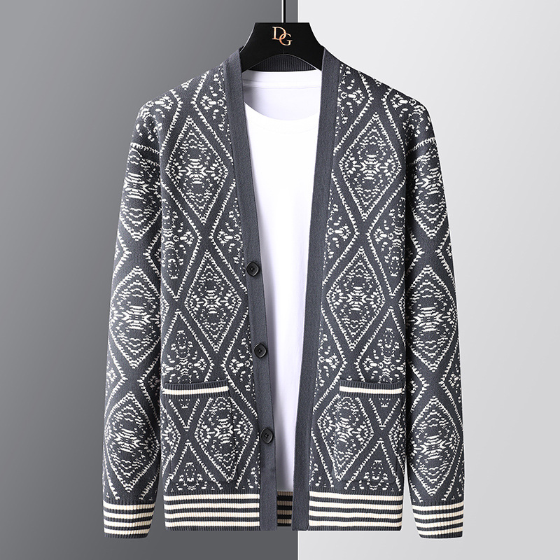 Spring And Autumn New Jacquard Cardigan V-neck Sweater Men