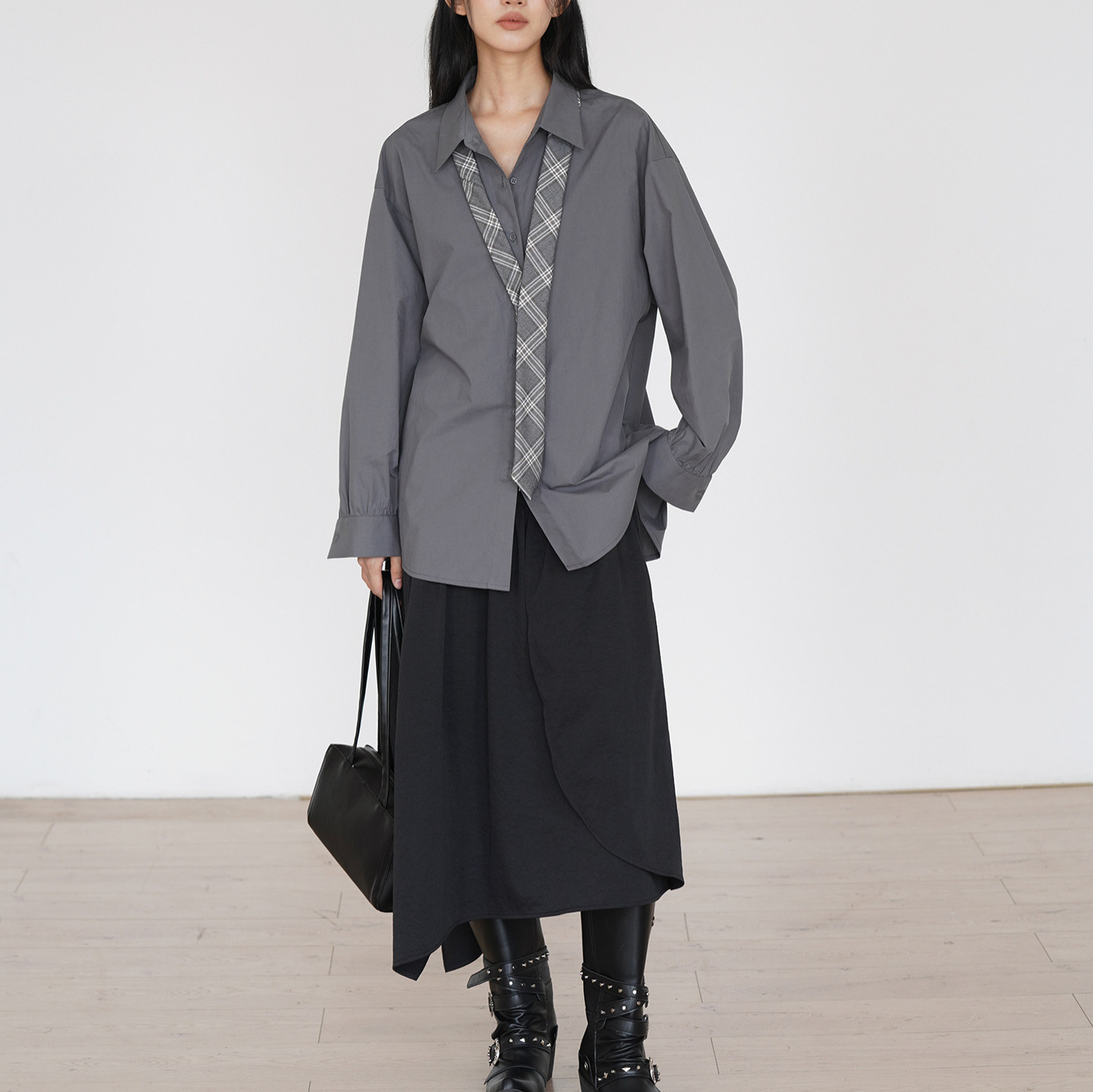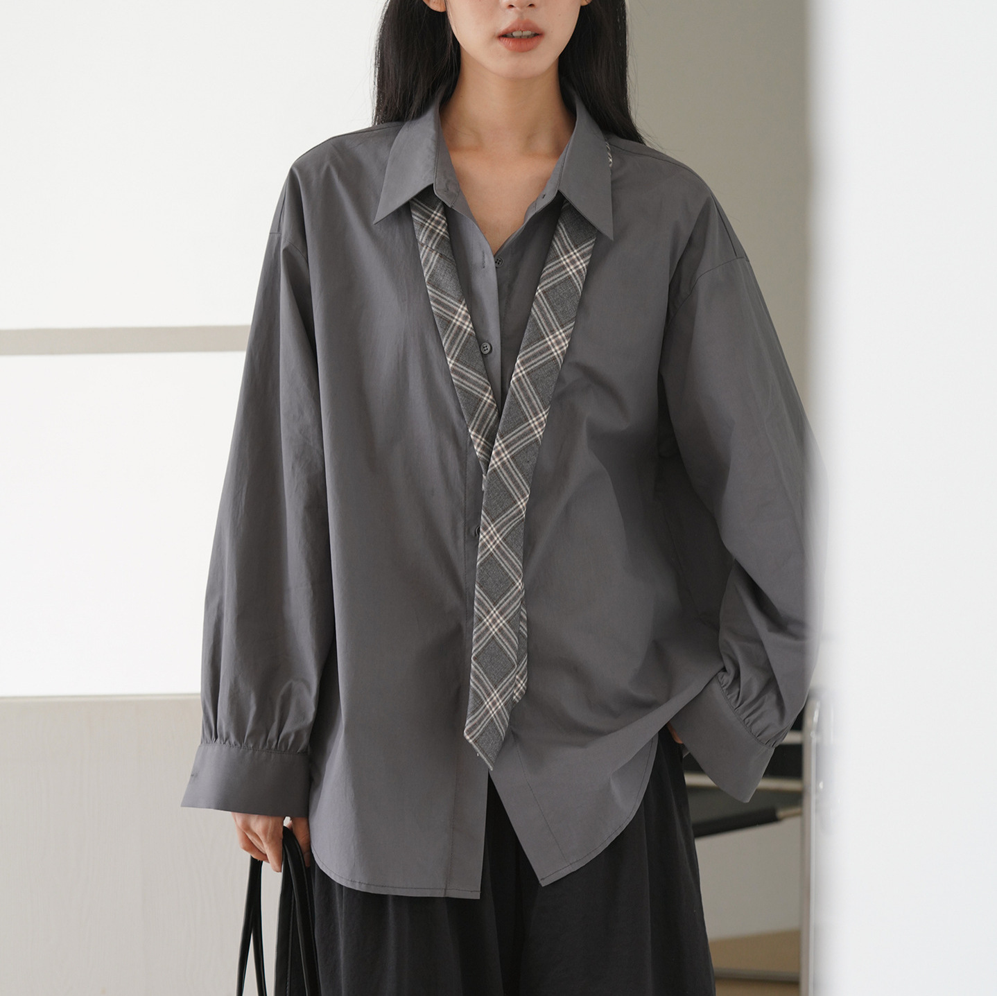 Color: dark gray, with a free tie inside