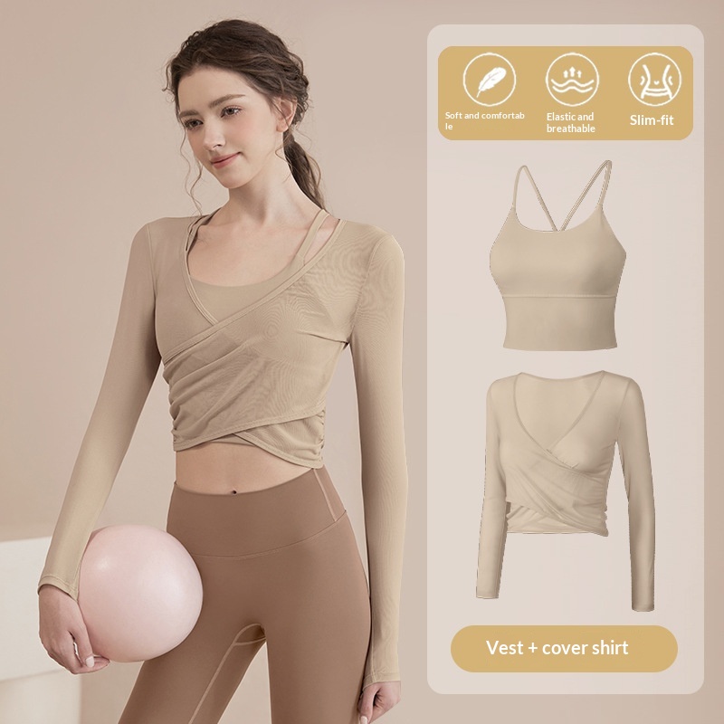 Spring And Autumn Solid Color Training Fitness Bra With Padding Pilates Set For Women