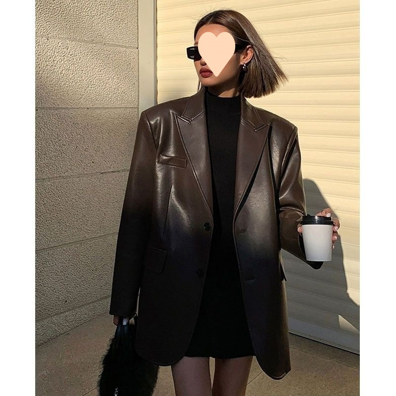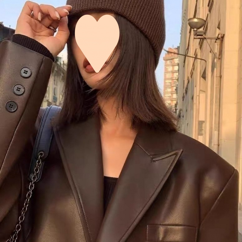 Color: black one-piece leather jacket with barreled head [ordinary lining], brown one-piece leather jacket with barreled head [ordinary lining], black one-piece leather jacket with barreled head [cotton lining]], brown one-piece leather jacket with barrage [cotton lining]]