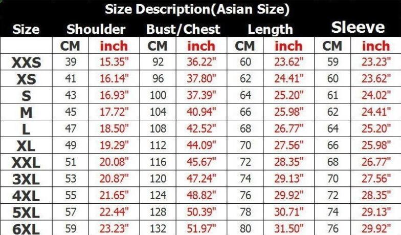 Size: XS,S,M,L,XL,XXL, XXL,XXXXL,5XL,6XL