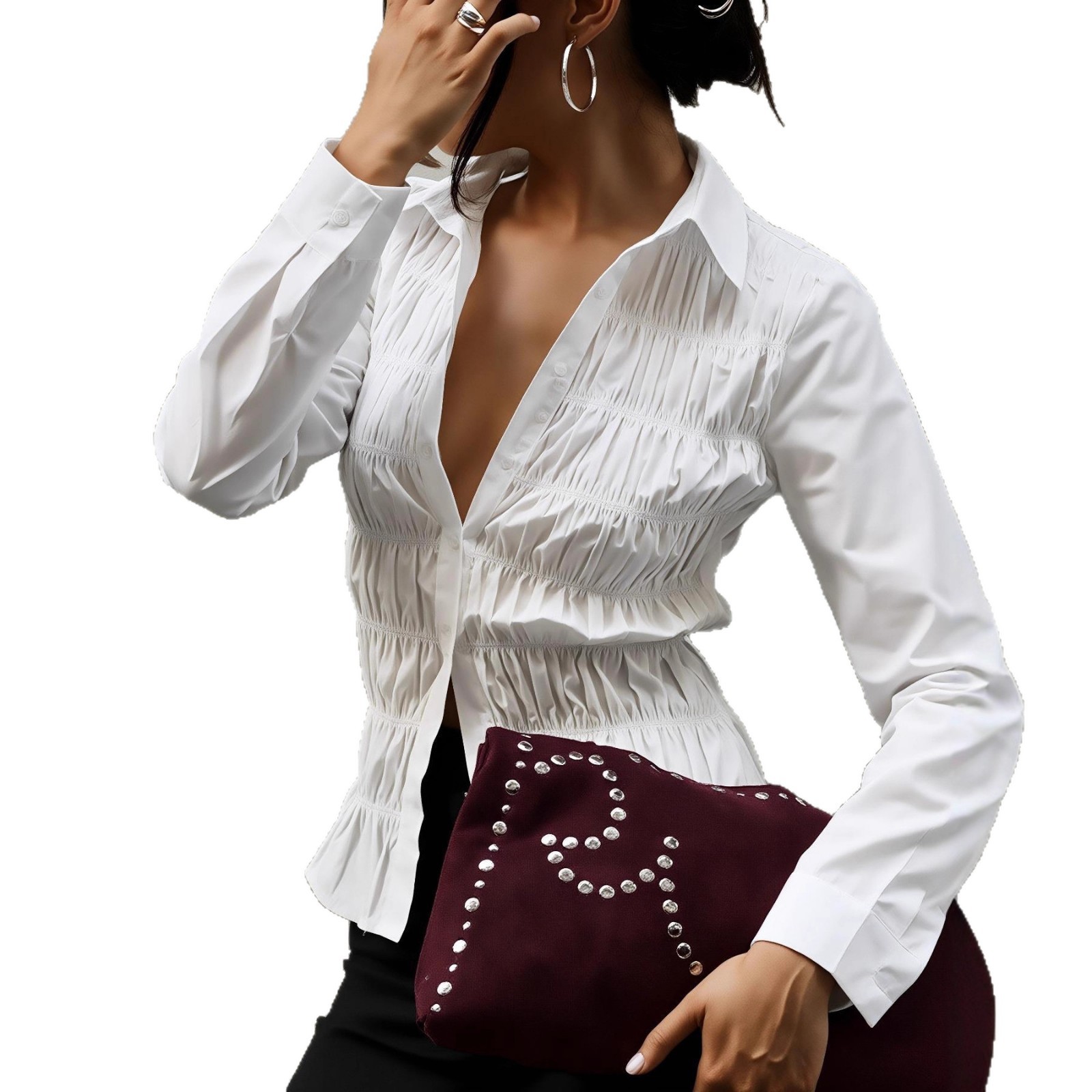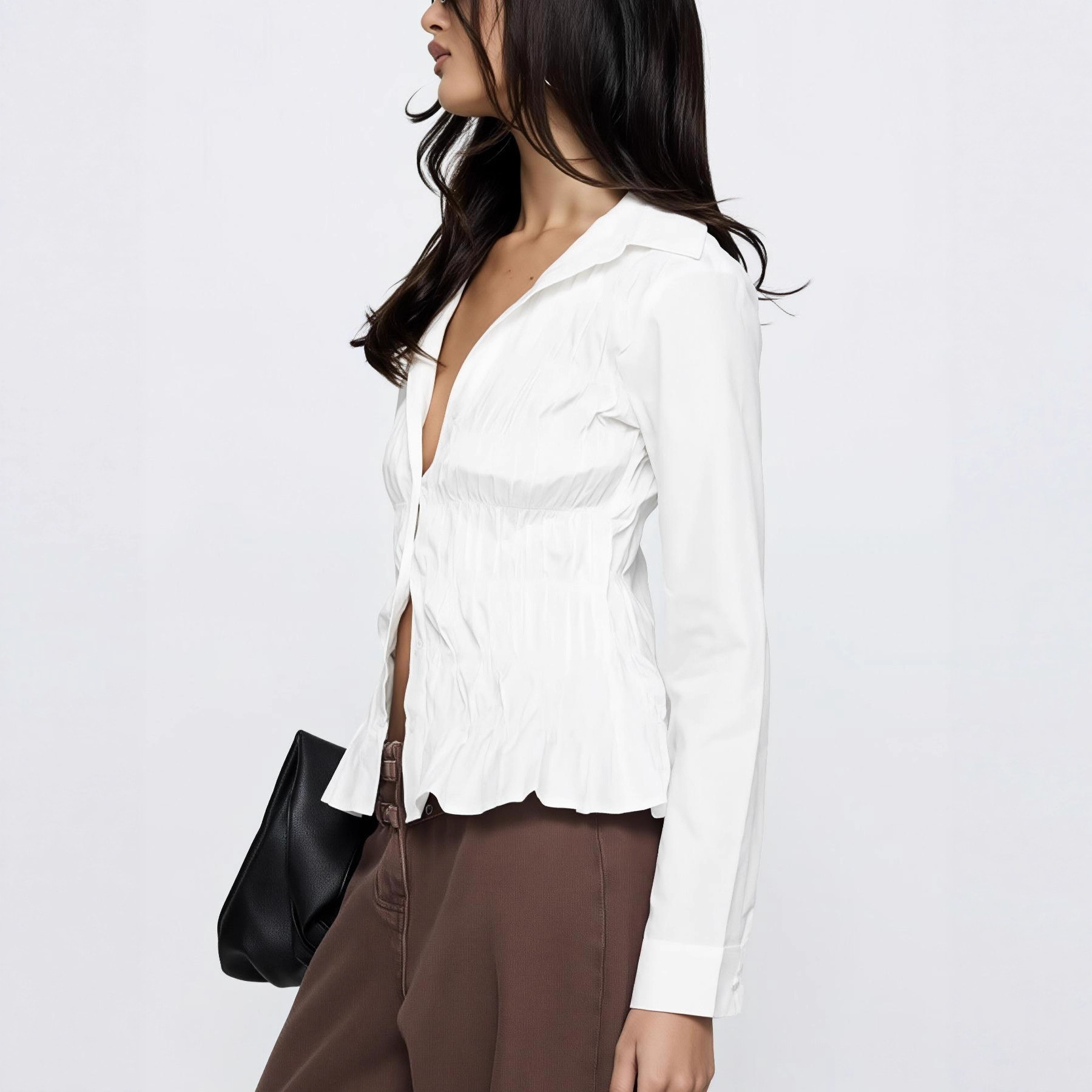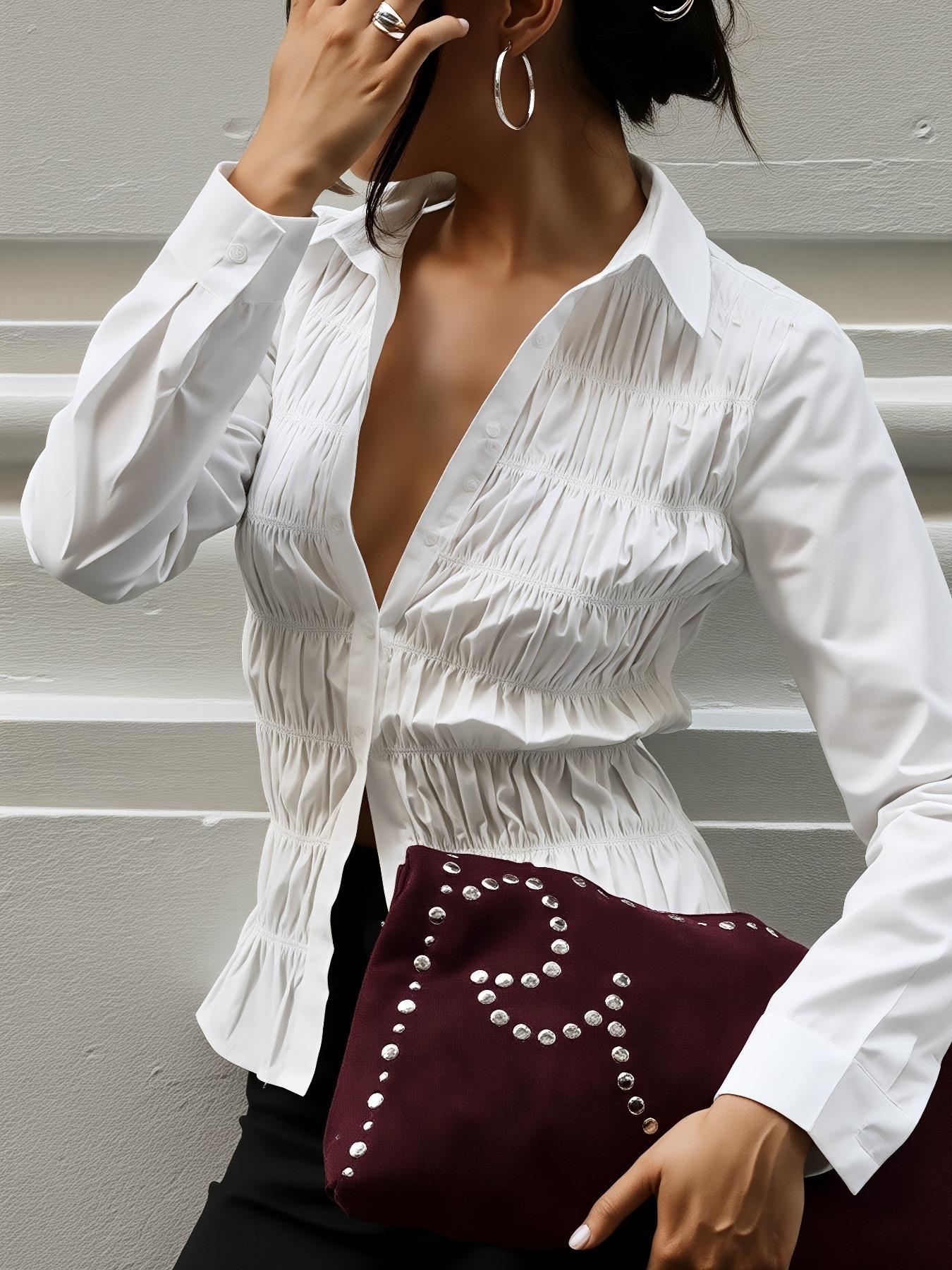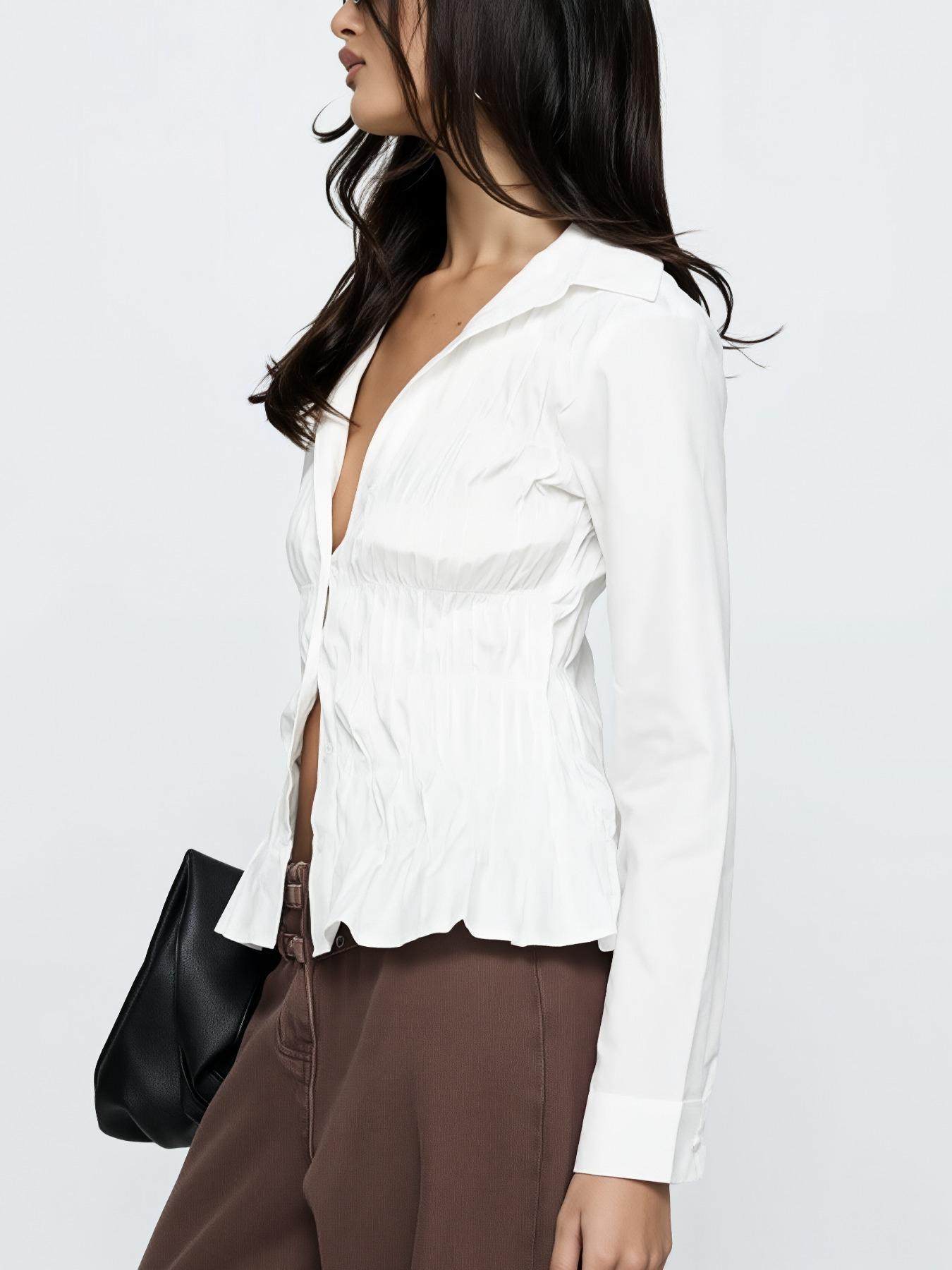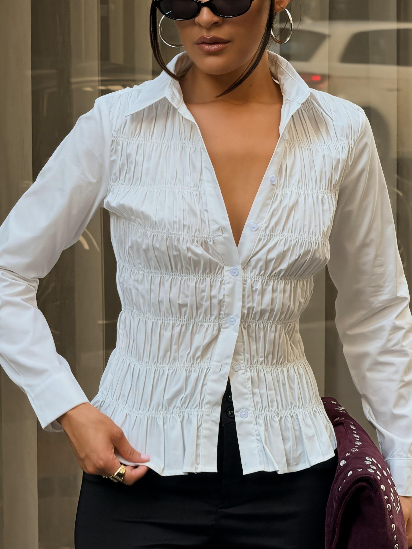 Spring And Fall Long-sleeve Button-up Shirt Top