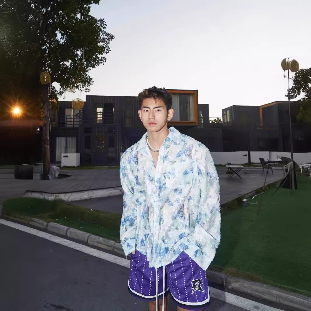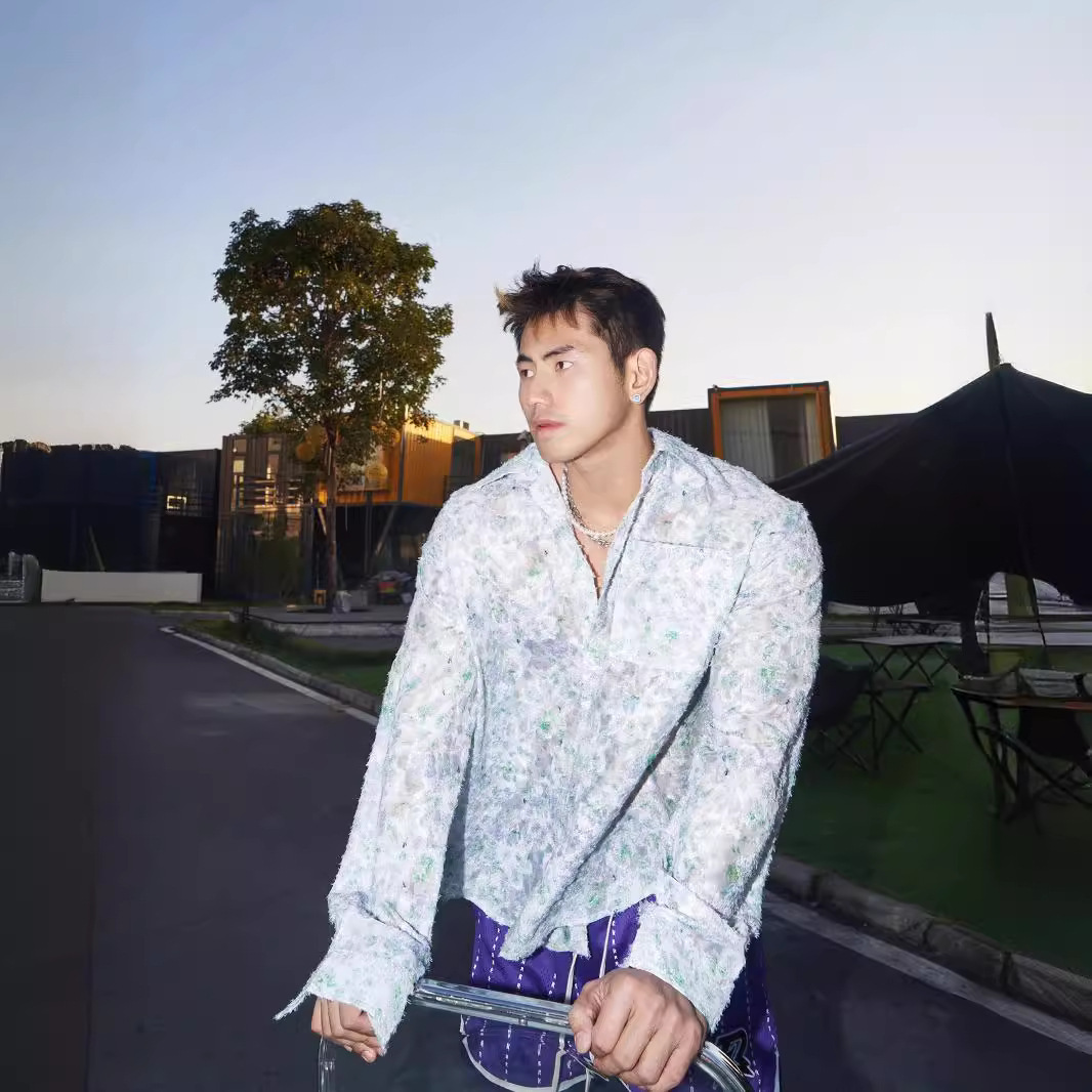 Spring And Summer American Three-dimensional Floral Shirt Niche Design Floral Long Sleeve Shirt